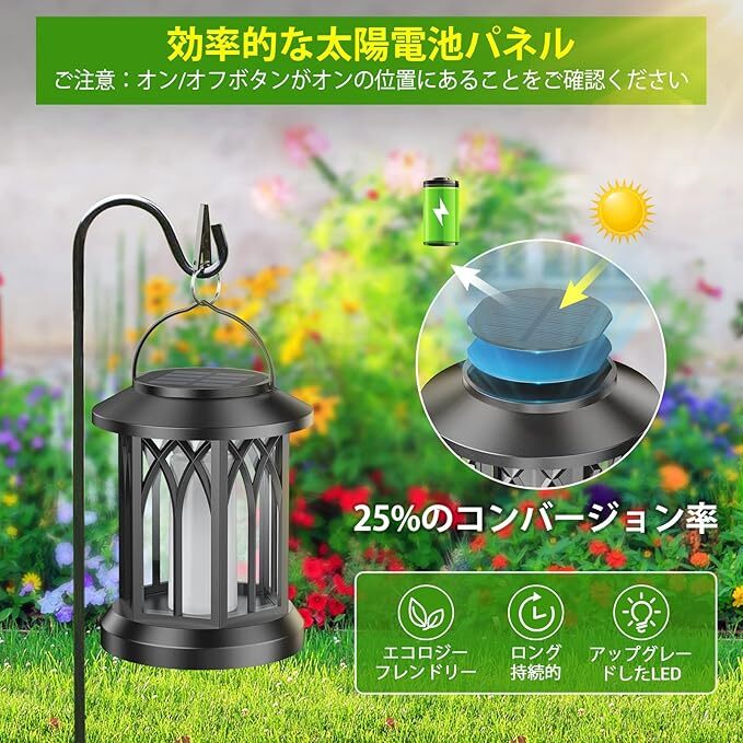 Letmy ソーラーランタン ソーラーライト 屋外 防水 ガーデンライト 屋外 防水IP65 火炎 イルミネーション 飾り LED 太陽光パネル充電 夜明け 自動オン/オフ パティオ、玄関、パーティー、庭、駐車場などに適用 ブラック 2個セット