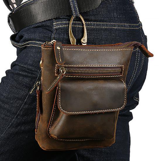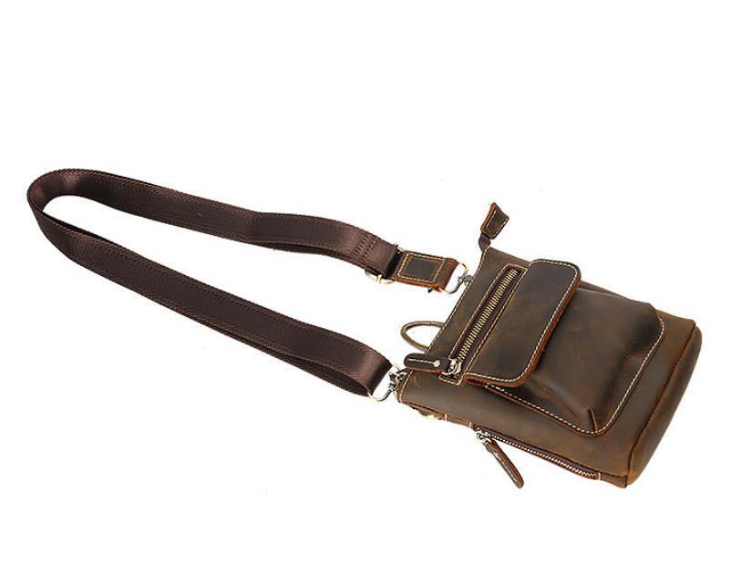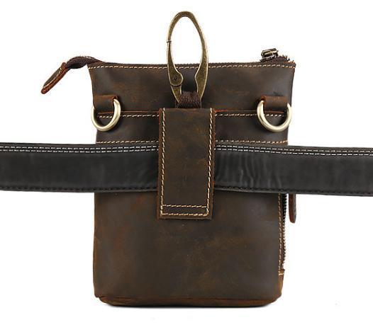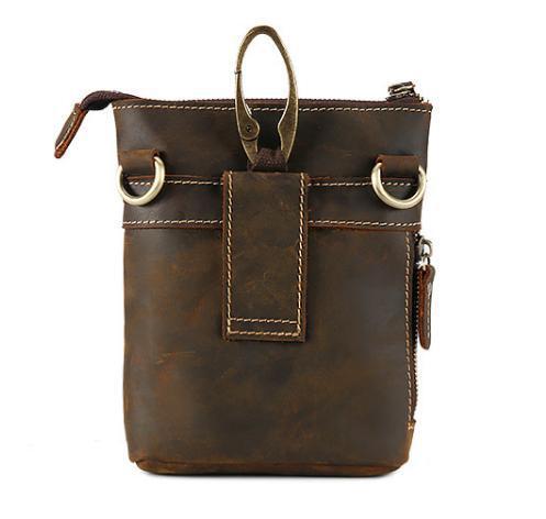 送料コミコミ☆ 3way ウェストポーチ 本革 ダークブラウン 牛革 ヒップバッグ ショルダーバッグ スマホ タバコ 【n228】