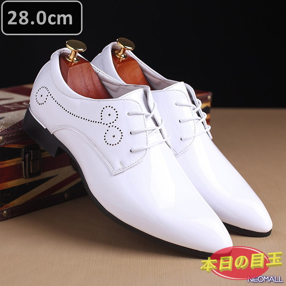 本日の目玉 ☆ メンズ ビジネス レザー シューズ ホワイト サイズ 28.0cm 革靴 靴 カジュアル 屈曲性 通勤 軽量 【443】