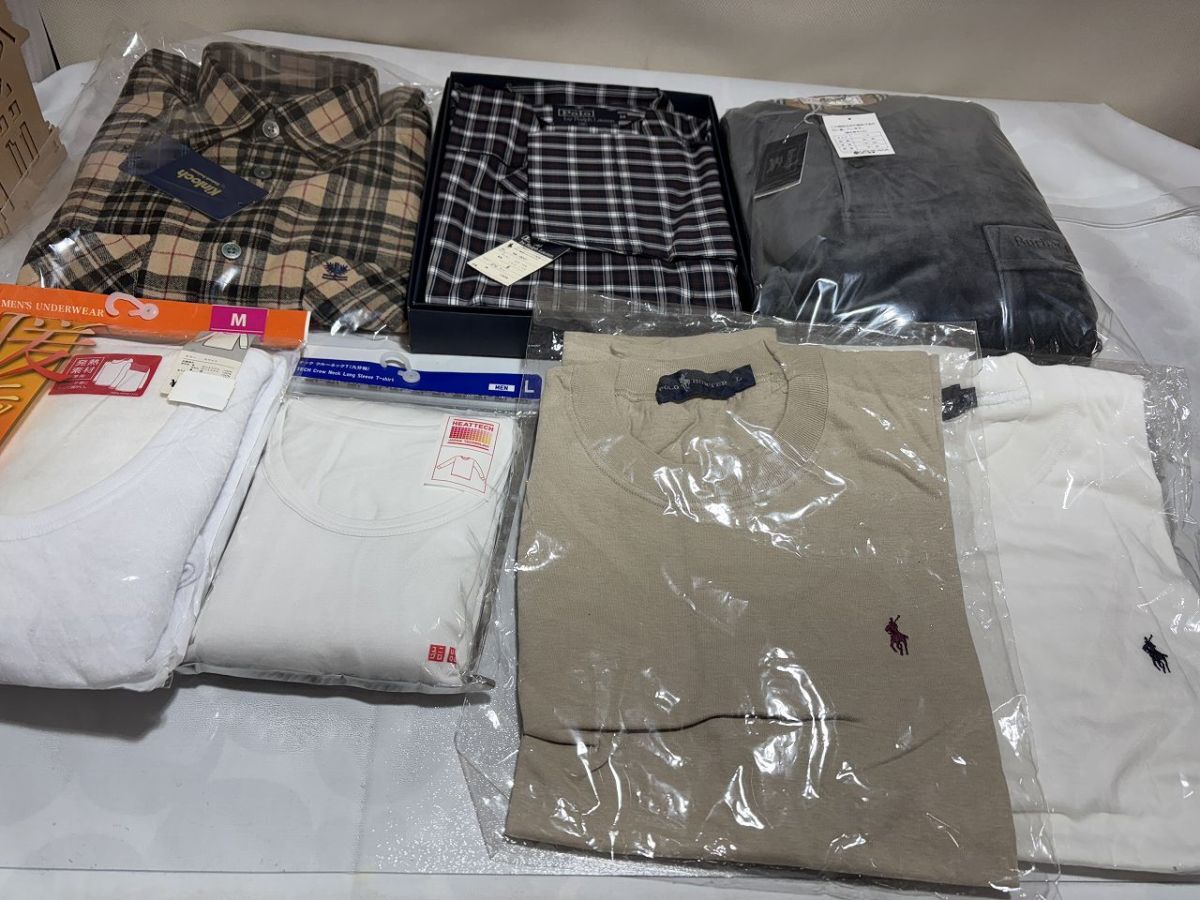 ■商品名メンズM/Lサイズ バーバリー・ラルフローレン・パジャマ・スエット他 7点■内容{サイズ(約)/(画像参照/素人採寸)}新品・未使用※長期保管の為汚れあり・バーバリー上下スエット(長ズボン長袖ベロア) Lサイズ・ラルフローレン パジャマ(長ズボン長袖) Mサイズ・ラルフローレンTシャツ(半袖) M×1枚 / L×1枚・チェック長袖シャツ(Lサイズ)・ユニクロヒートテッククールネックT(9分袖) Lサイズ・暖ニットキルト肌着 Mサイズ(長袖)・現在スマートフォンでは文章の表示が異常になる場合がございます。不明点などございました際はご質問ください。・梱包サイズ、送料は下部の発送詳細欄に記載がございます。ご参照のほど宜しくお願い致します。■詳細・長期保管品。・状態→目立つ汚れなし・大きさは画像を参照ください。・新品同様をお求めの方は購入を御遠慮願います。・画像の物が全てになります。・画像を参照の上ご判断宜しくお願い致します。・専門知識が無い為詳しいことはわかりかねます。・長期保管で保管期間/購入日は不明の為、品質保証はできかねます。・ご理解ご了承いただける方のみのご入札をお願い致します。■同梱について複数落札商品の同梱についてはヤフオク機能の《まとめて取引》よりご依頼ください。なお、ヤフオクの規定により落札後72時間以内の商品が同梱の対象になります。また、評価が低い落札者様につきましても《まとめて取引》がご利用頂けません。詳しくは以下にて、宜しくお願い致します。【まとめて取引の手順】【まとめて取引の条件】・割れ物など壊れやすい物は、破損防止の観点から同梱はできませんが、落札後《まとめて取引》にてご対応いただけた場合は複数個口にて発送致します。送料は個別対応より割引になります。・個別取引にて同梱をご希望の場合は必ず送料連絡前に取引ナビにてご連絡いただけますようお願い申しあげます。