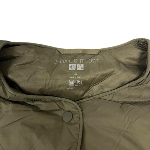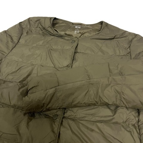 ユニクロ UNIQLO ダウンコート ULTRA LIGHT DOWN 長袖 クルーネック 無地 212-429457 XL カーキ レディース