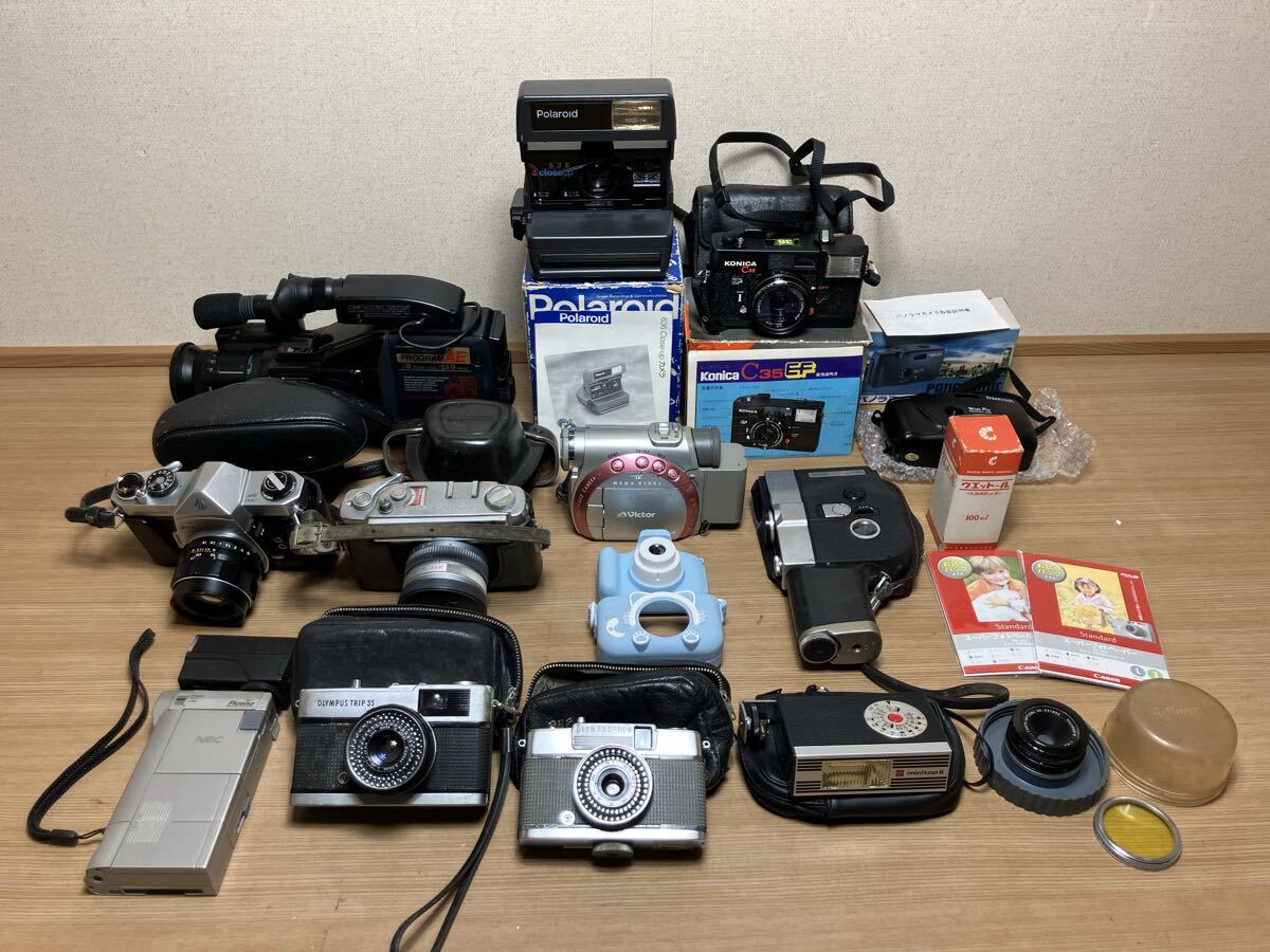 11-43カメラ 等 まとめ 約12点 フィルムカメラ ビデオカメラ ポラロイド パノラミックカメラ KONICA Victor NEC 等 動作未確認 ジャンク品