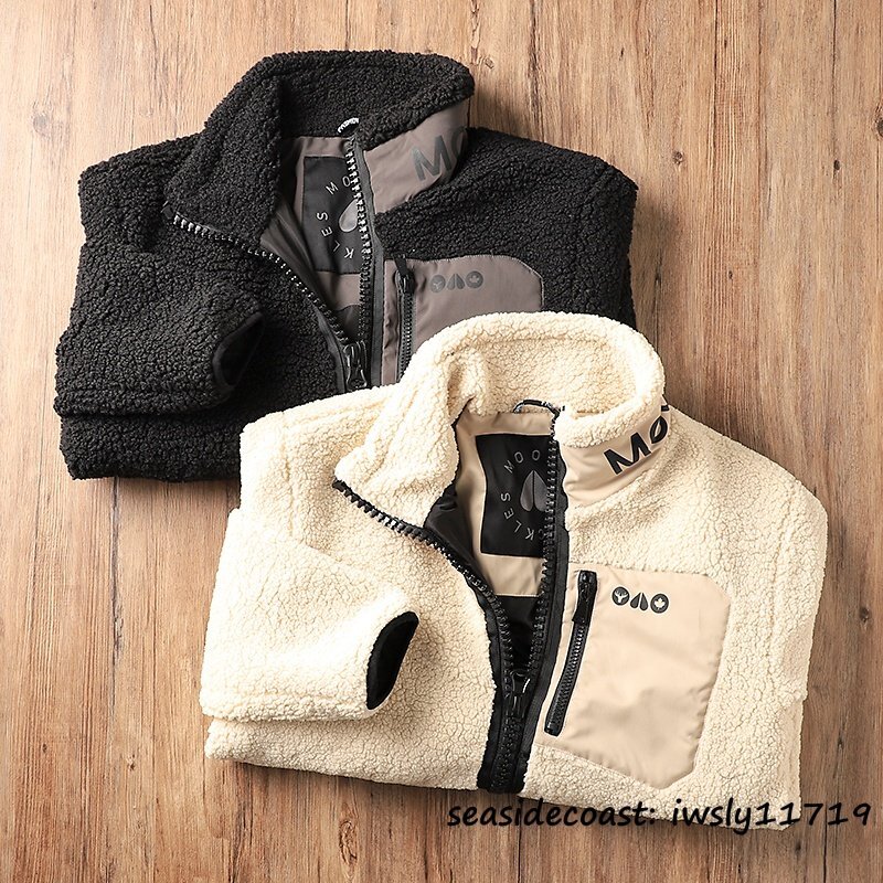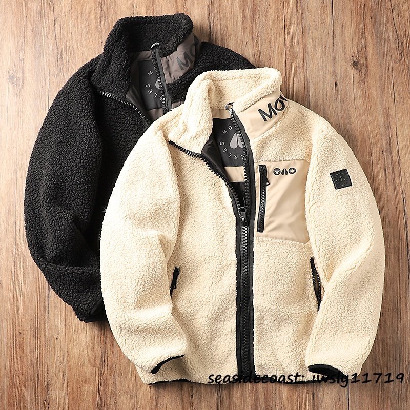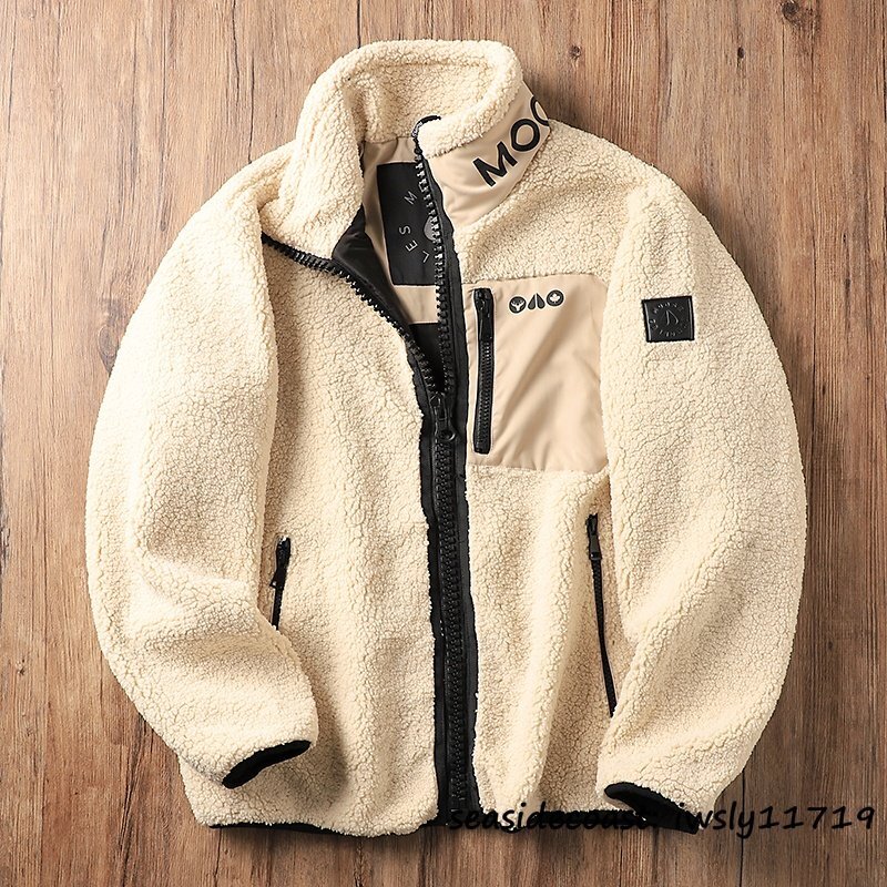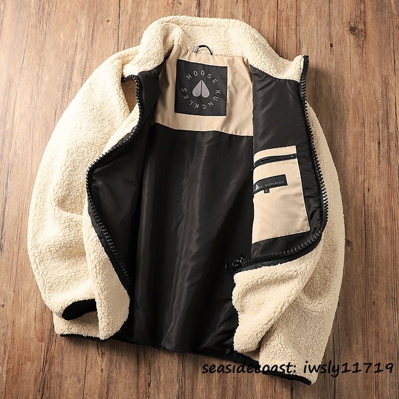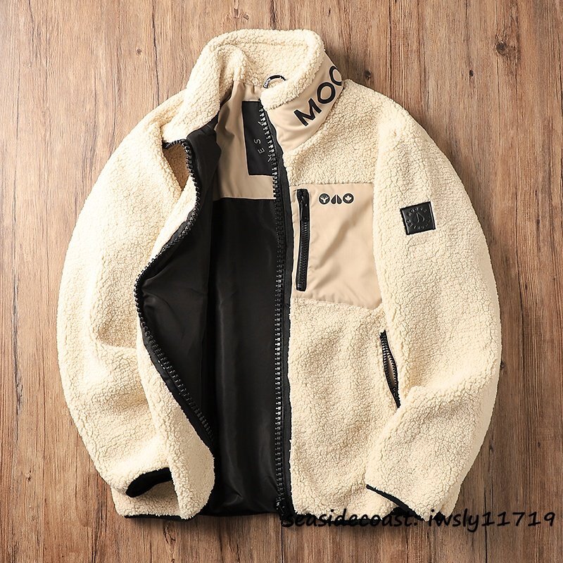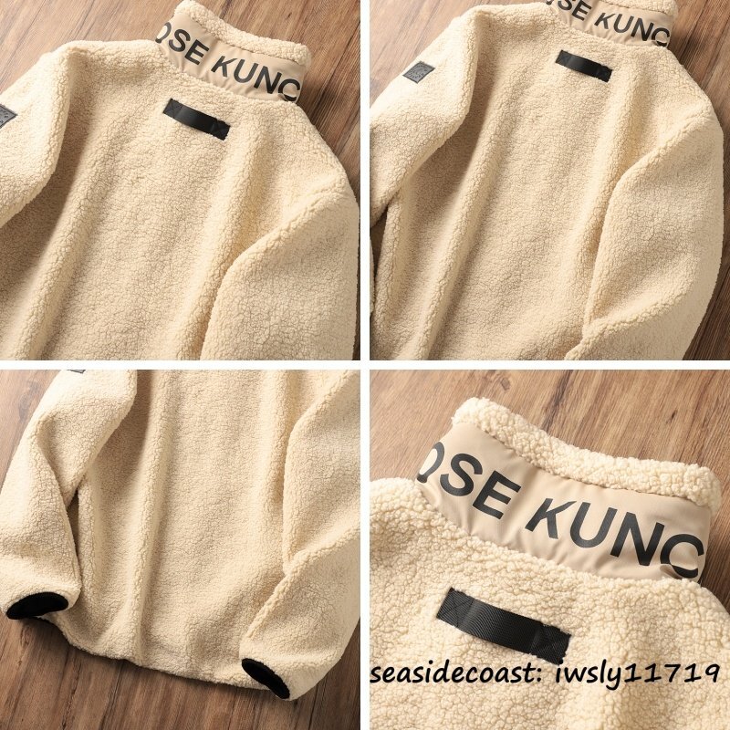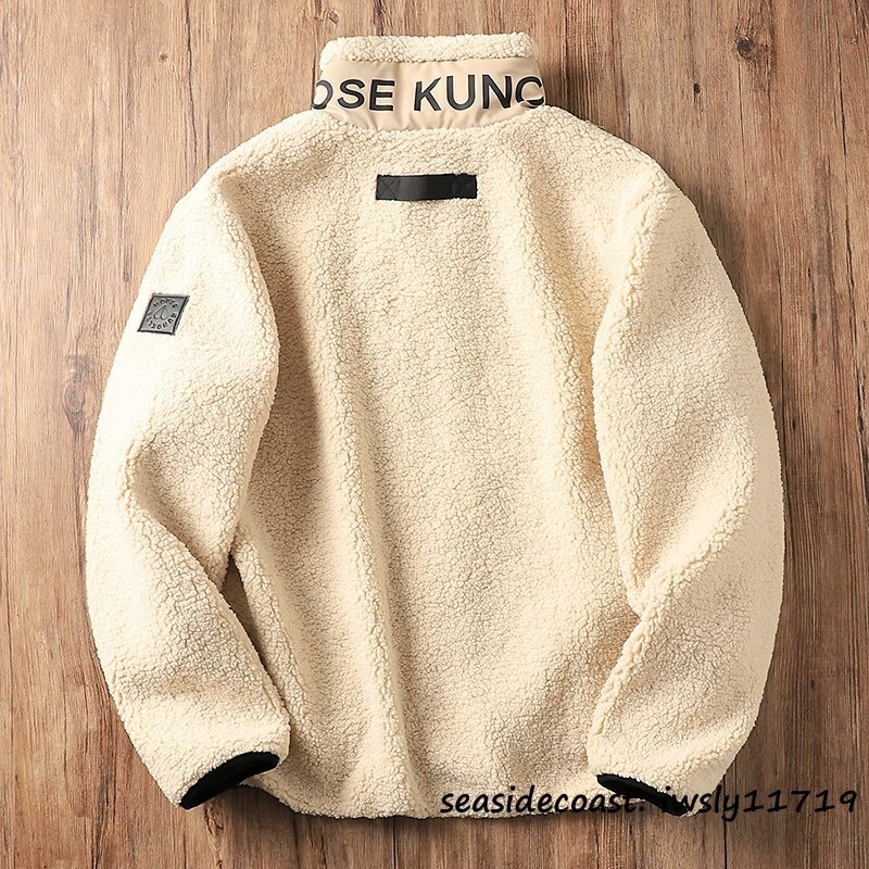 新品特売*フリースジャケット メンズ 秋冬 スタンドカラー 裏ボア 厚手 秋冬 ブルゾン ジャンバー アウター カジュアル 個性 ベージュ L