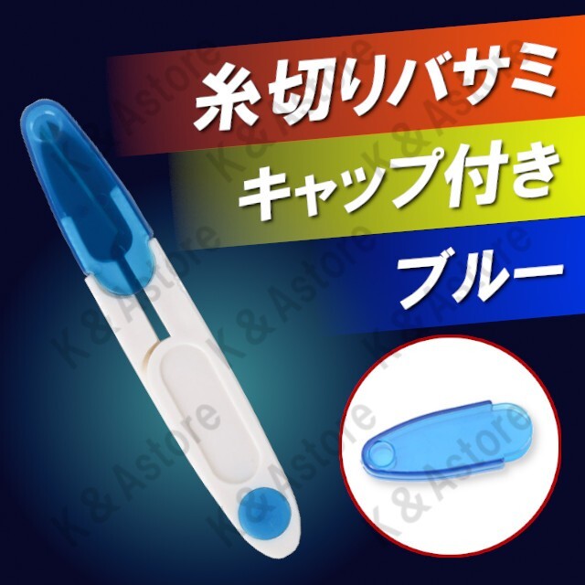 【匿名配送】糸切りバサミ はさみ ハサミ 鋏 刺繍 縫製 手芸 パッチワーク キャップ付き 保護カバー付き 青 ブルー ハンドメイド 裁縫道具