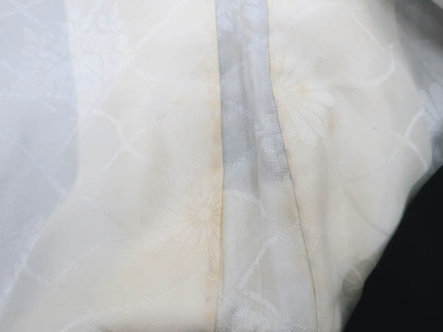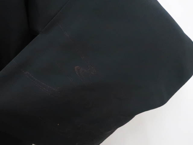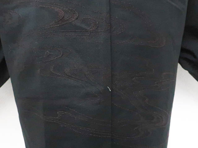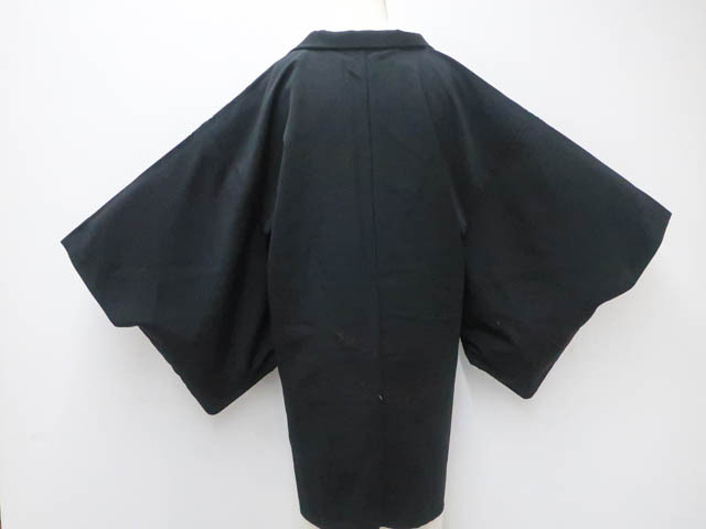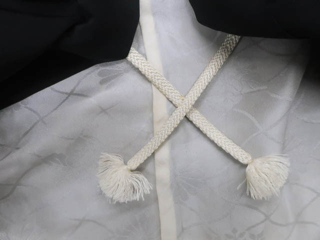 リサイクル商品のため、紐と羽裏全体にしみがございます。 所々薄汚れがございますが着用可能なお品です。 地色は 黒です。 1枚目の画像が近いお色かと思われます。 素材は正絹です。 |