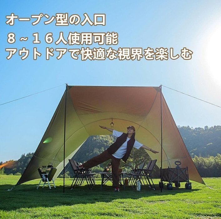 タープ トンネルタープ アウトドア キャンプキャノピー アーチ型 超大型8-16人用 日焼け防止 通気防水 ピクニック 収納袋付き xhw0034