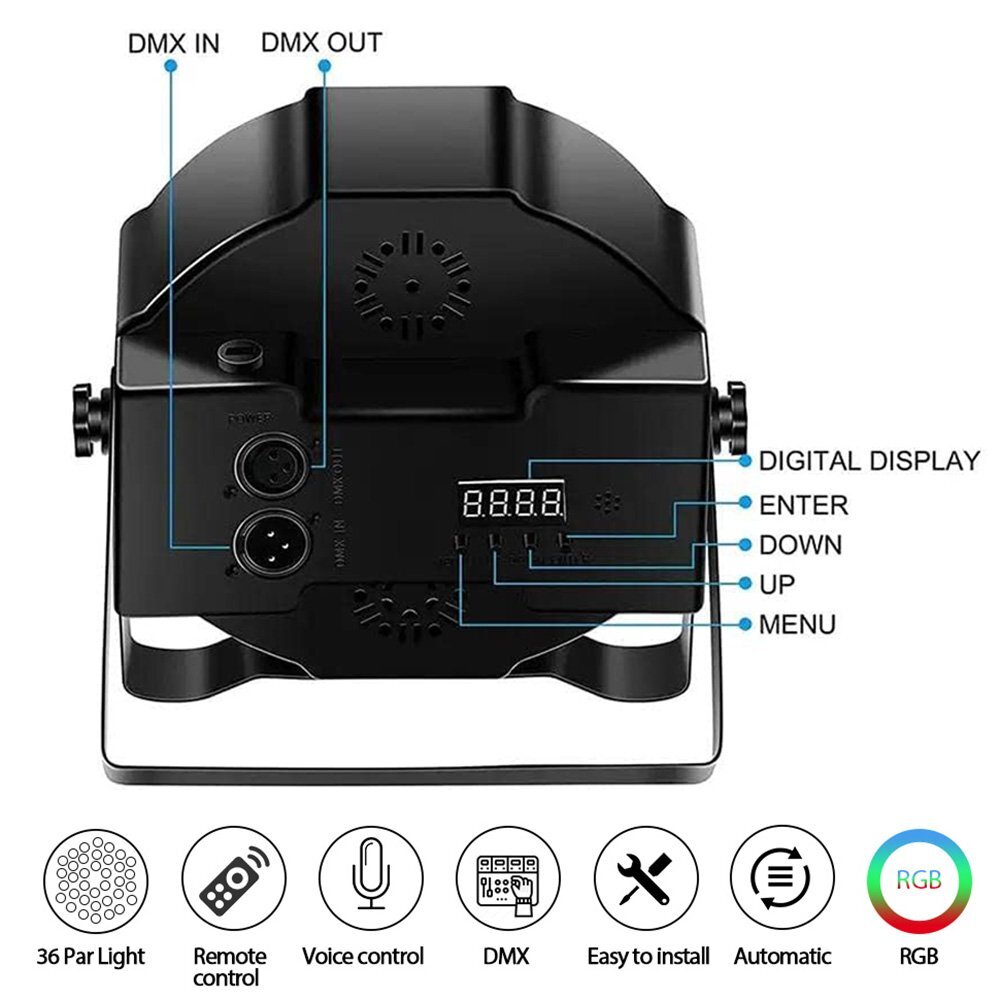 | ■36個のRGB LEDライトビーズで内蔵されている、高輝度、少ない電力を消費し、安定した性能を保証します。調整可能な速度を変えることで、静電色、ジャンプ、段階的、ストロボおよびスクロール照明効果。さまざまな設定や明るさのレベルを持ち、追加のストローブ効果を持つリモコンが付属しています。 ■DMX512、サウンドアクティブ化、マスター/スレーブおよび自動モード。調整可能な速度を変えることで、静電色、ジャンプ、段階的、ストロボおよびスクロール照明効果。 ■天井だけでなく壁や地面にも光を当てることができるように、取り付け用の付属品一式があります。置いて、ステージや天井に向けてライトアップ。吊り下げるよりも設置が簡単なのがポイントとなっております。 【商品情報】 ・光源: 1W x 36 LED RGB ・電圧:AC110~240V、50/60Hz ・電球の種類: LED DMX ・制御チャンネル: 7CH ・ビーズ角度: 30 (+-5) 度 ・電源プラグ: US プラグ ・ランプビーズの色: 12×レッド、12×ブルー、12×グリーン。 ・レンズ効果: 段階的な色の変化、色のジャンプなど。 | ||