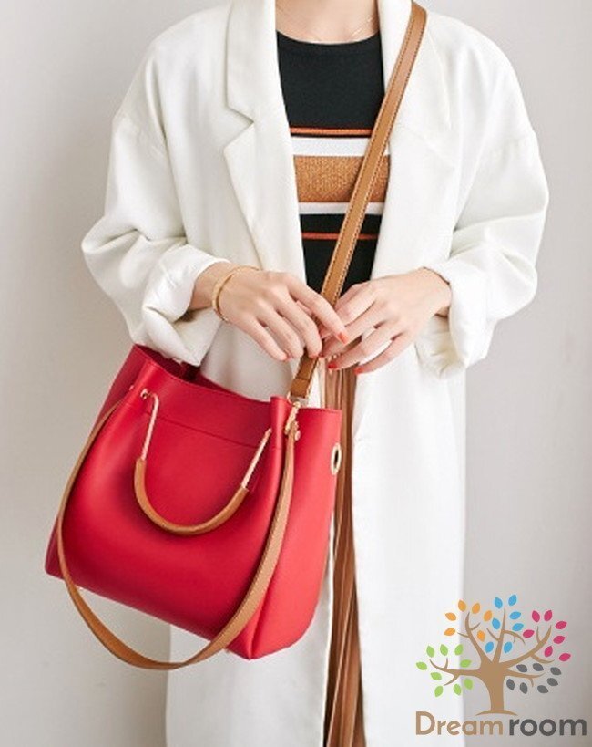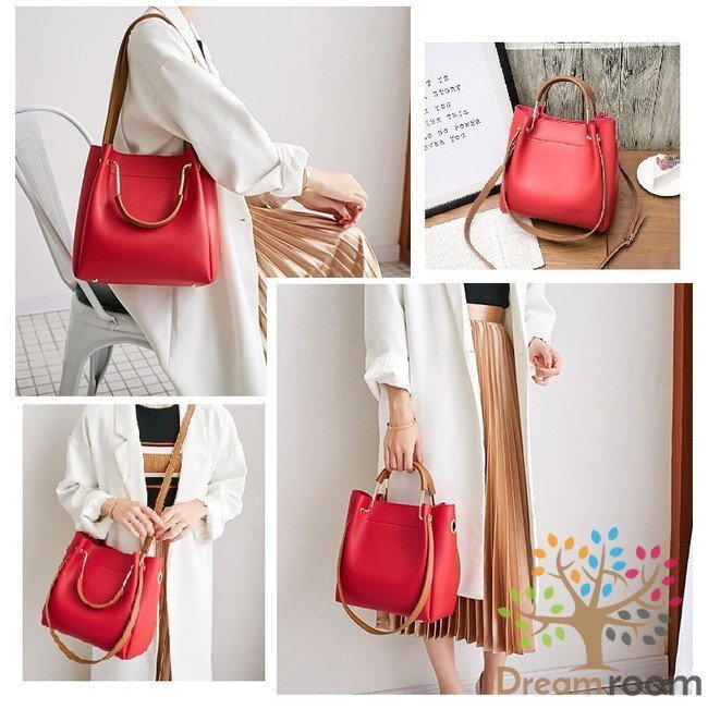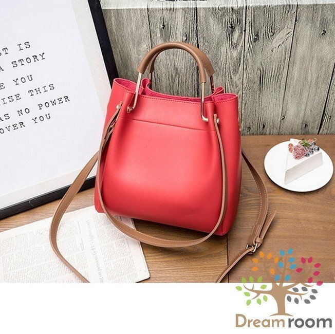 1スタ☆スモーキーレザー レトロバケツトートBAG【レッド】大型収納 ハンドバッグ ショルダーバッグ セレブ 合皮革 K-094-1