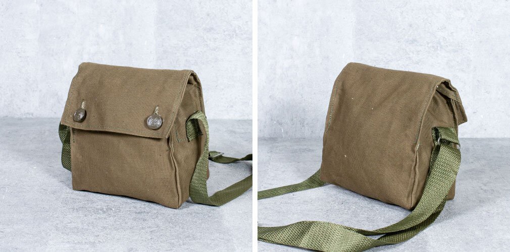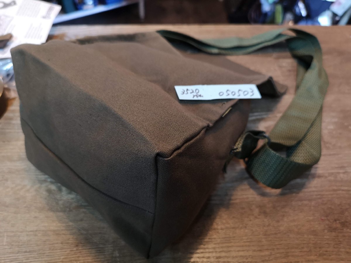 チェコ軍にて採用されていたキャンバスショルダーバッグ スモールです。5枚目までの画像は流用です。 マチが広いコロンとした形が特徴的な小さなバッグで、スマホや財布、ハンドタオルなど必要最低限の荷物を入れて持ち歩くのにちょうど良いサイズ感です。 生地はコットンキャンバス製で中は仕切りの無いシンプル構造になっており、ショルダーストラップはナイロン製で長さを調節できます。フタを留める2つのボタンはチェコ軍の双剣マークが刻印されています。。 サイズ:H約16cm × W約18cm × D約11cm ショルダーストラップの長さ 約75から135cm 素材:コットン 状態:デッドストック 沖縄離島を除く全国元払い500円でお送りいたします、落札価格にプラスでお願いいたします。