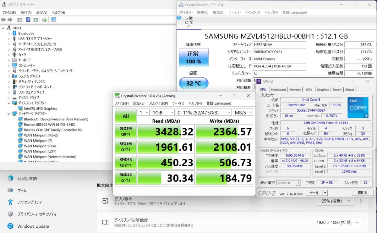| CPU: 超高速 Intel 10コア 卓越性能 第13世代Core i5-1334U 1.3Ghz、 10コア12スレッド (ターボ・ブースト利用時の最大周波数 4.6GHz) |