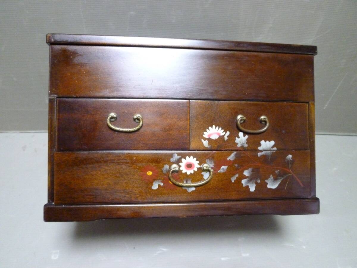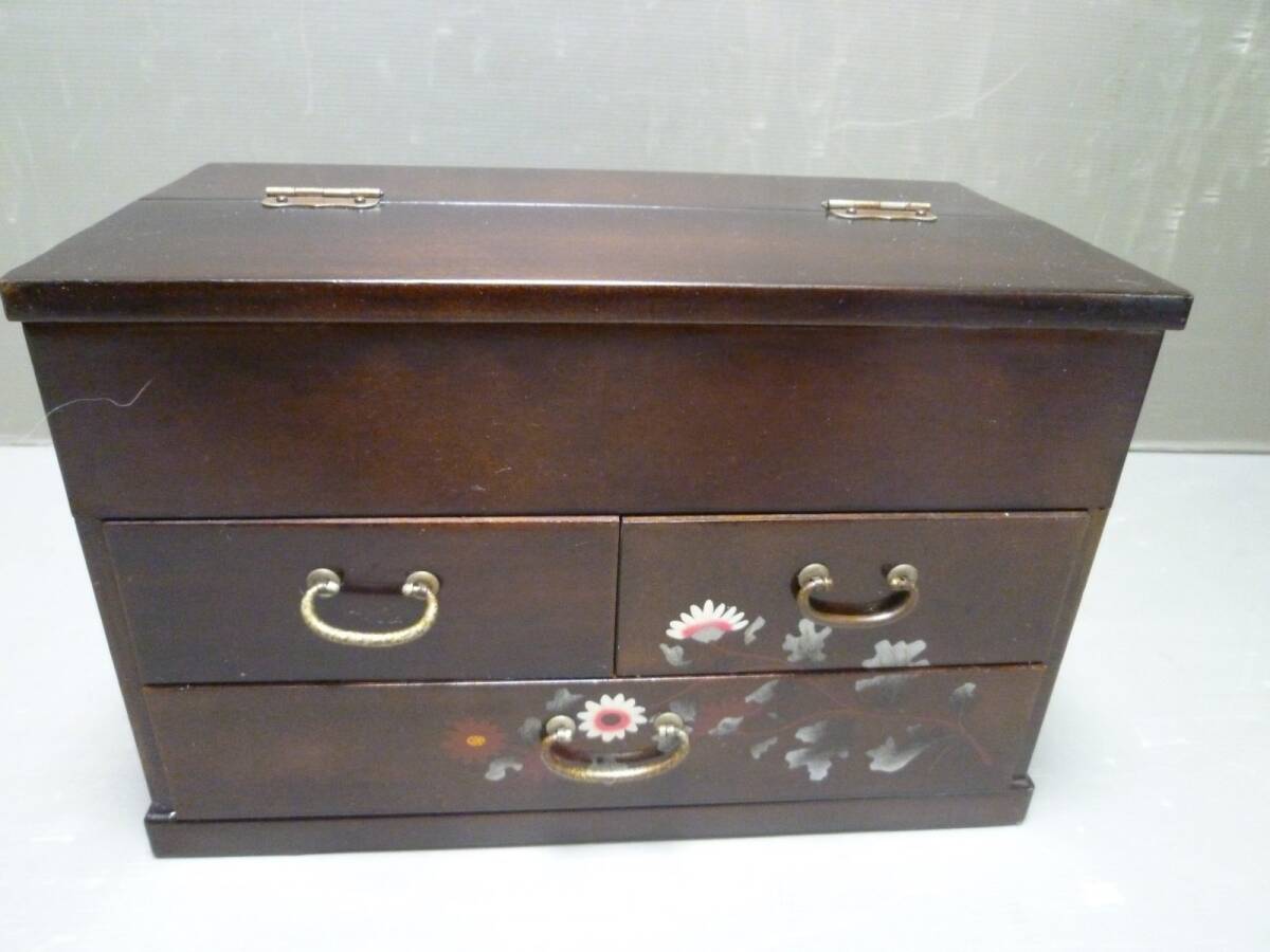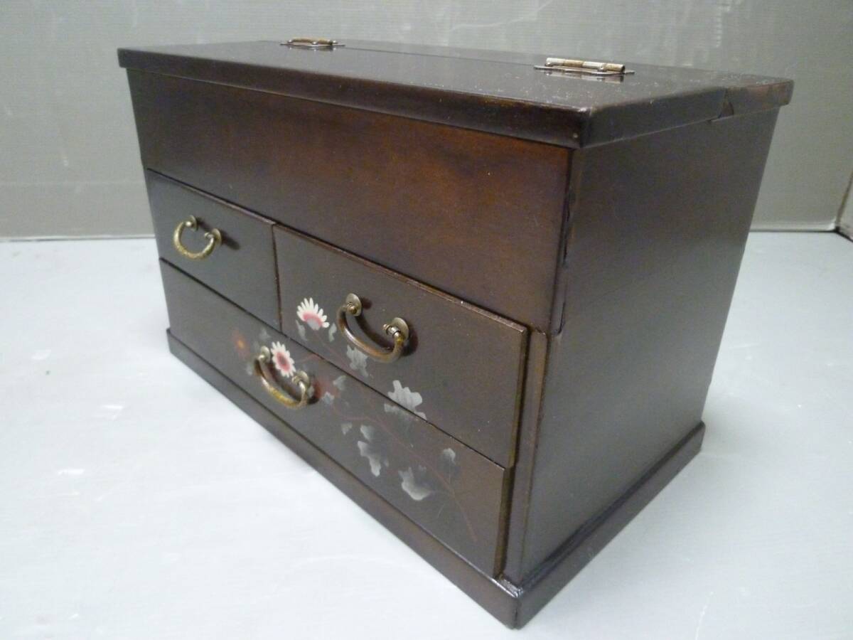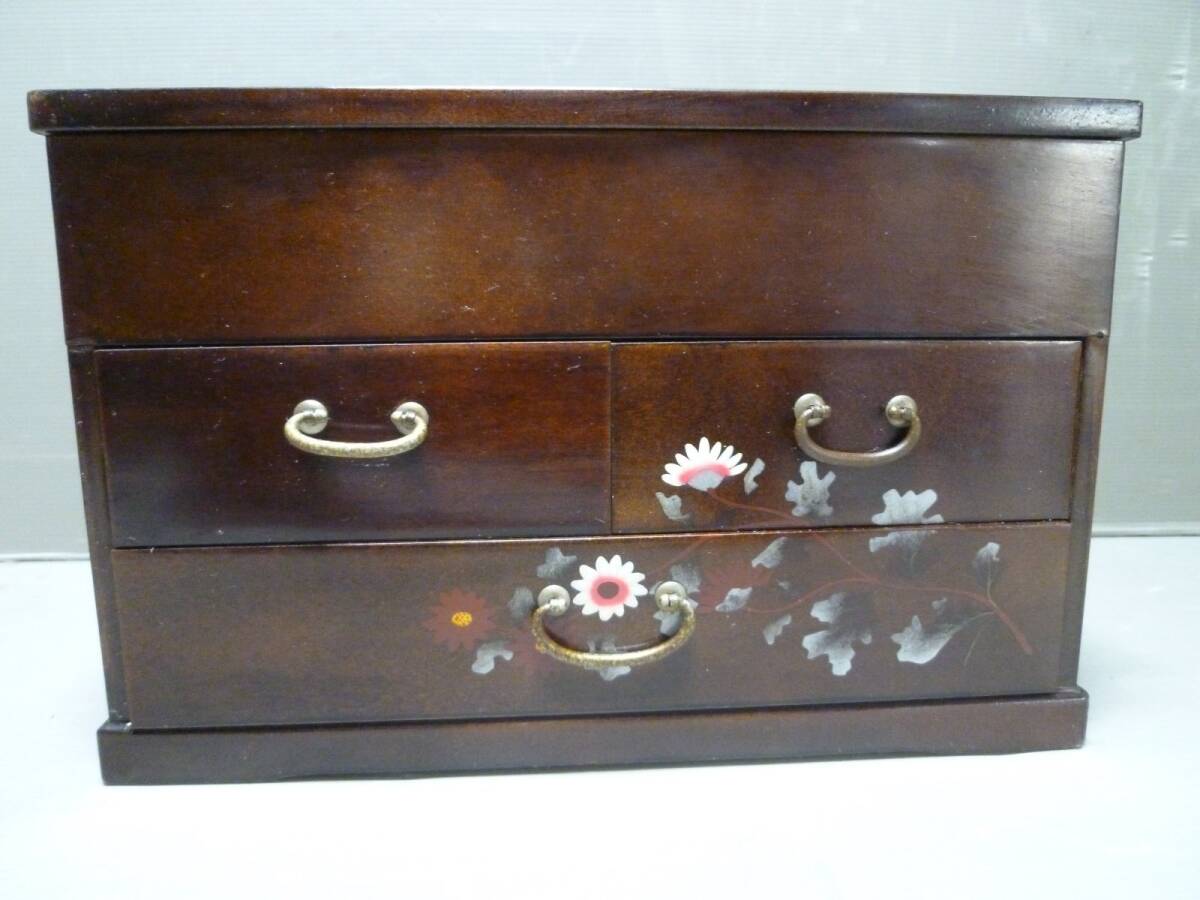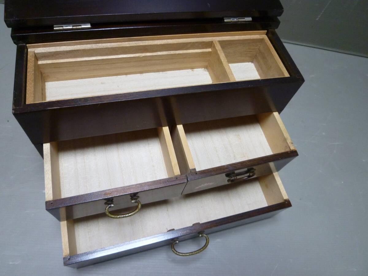 | 幅33奥行18高さ21センチ 重量2.2kg 桜と栓突板貼り 引き出し内部妬け汚れあります 外観当たり傷擦れ塗落ちがありますが状態は概ね良好です.宅急便80サイズ¥1230~¥2070の発送です. | |||
