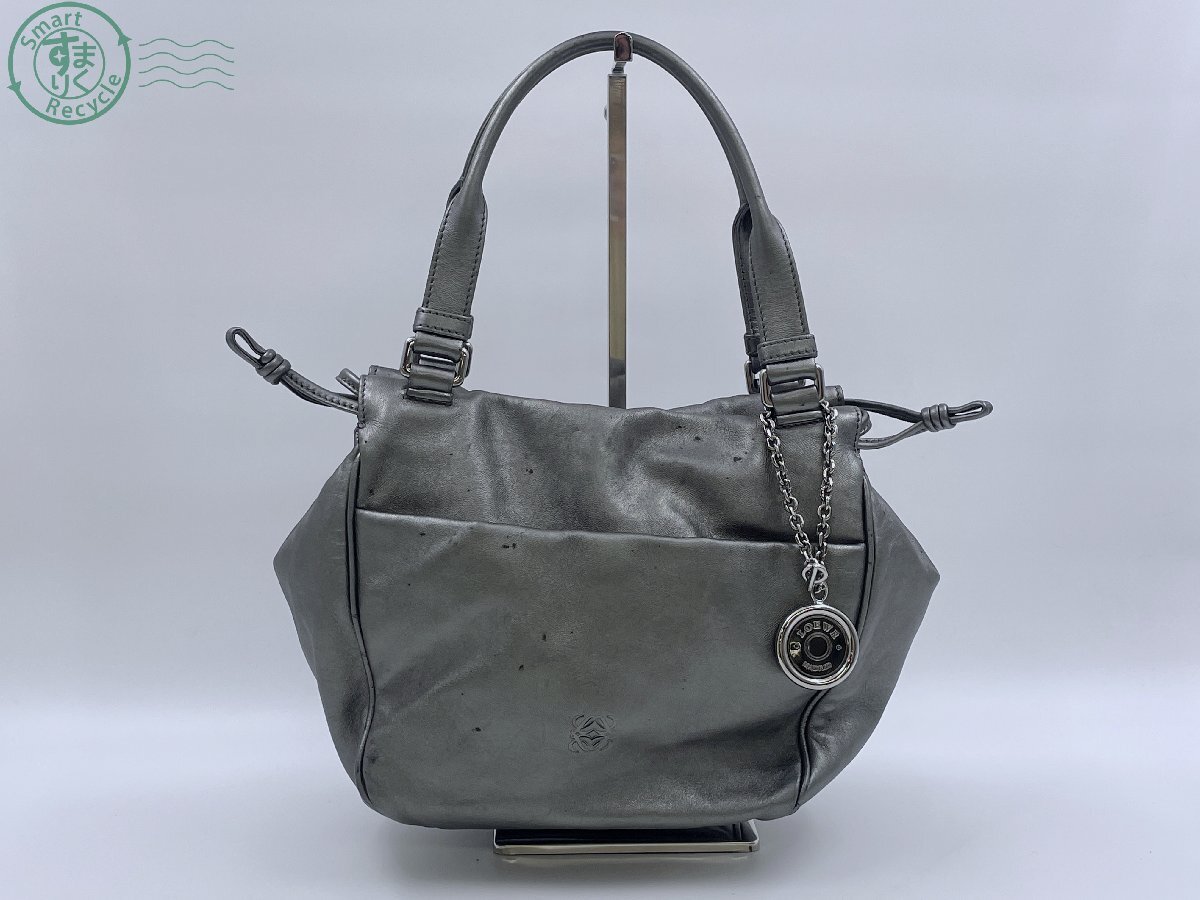 ☆LOEWE ロエベ ハンドバッグ アナグラム レザー風 シルバー系 バッグ 鞄 ロゴ カバン ファッション小物 現状品 中古 | |||