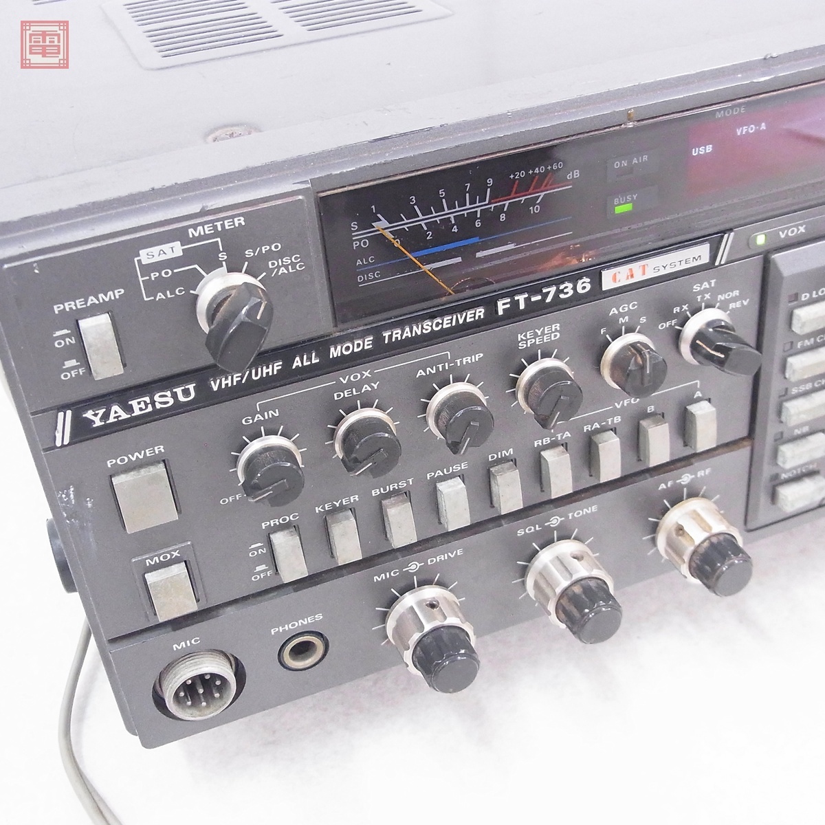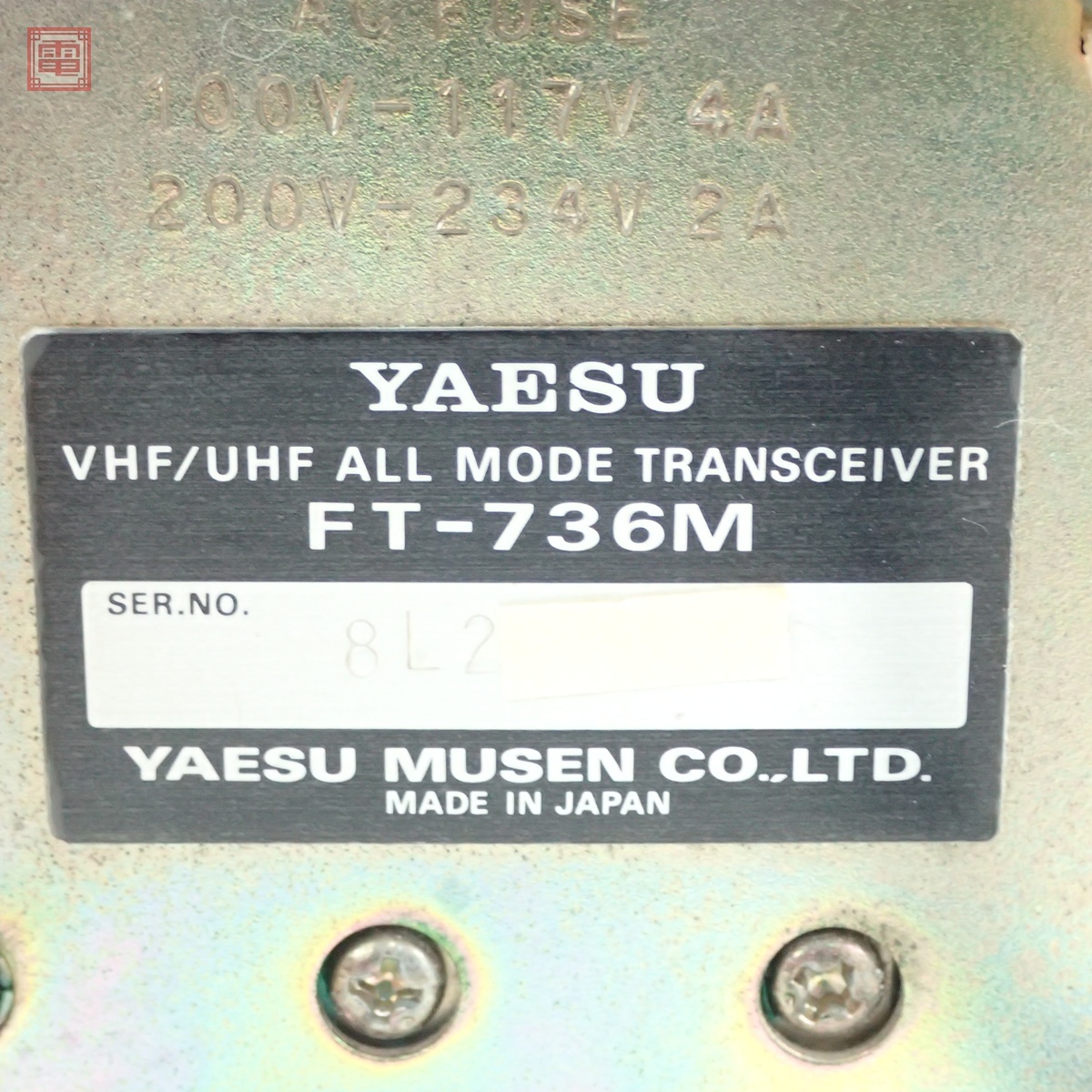 ヤエス 八重洲 FT-736M 50/144/430/1200MHz ■<出品物> ・本体 ・ACコード ■<送信について> ・手持ちの電鍵を使用して測定した所、CWにて下記の通りでした。 ★50.0MHz:約 8W(FM 約 8W) ★144.0〜430.0MHz:約 30W(FM 約 30W) ★1200MHz:約 3.5W(FM 約 3.5W) ・アンテナを接続しての確認は行っておりません。 ■<受信について> ・SGから -73dBm の信号を入れた所、下記の通りになりました。 ★50.0、144.0、1200MHz:約 S9+10dBm ・430MHzは受信出来ませんでした。 ・1200MHzは1KHz程のズレがあります。 ■<状態> ・購入時期、オプションの組込は不明です。 ・オールリセット済みです。 ・AFゲイン、スケルチに目立ったガリはありません。 ・各ボタンに接触不良があります。 ・中古品の為キズ、汚れ等があります。 ・タバコ臭はありません。 ■写真のものが全てです。付属物の有無や状態については写真からご判断ください。 ■付属物については細かいチェックはしておりませんので、万が一、欠品があったり余計な物が入っていたとしてもご了承ください。 ■商品到着後、当店の保証期間中は、商品及び箱や取説、付属品などを1つでも廃棄や破損をしないようにお願い致します。廃棄や破損をした場合、商品に問題があった場合でも対応や返金などの対処ができなくなります。 ■商品によりますが、発売されてから10年以上経過している中古品である事をご理解頂いた上でご入札をお願い致します。なお、新品や美品、また特記事項がある場合は別途明記します。 | |||