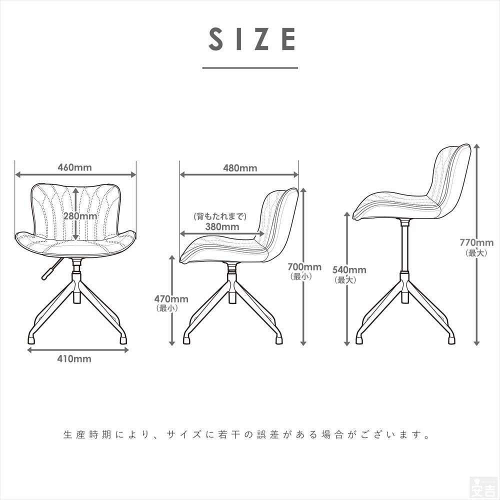 | 仕様 | 座面360度回転、ガス昇降式 |