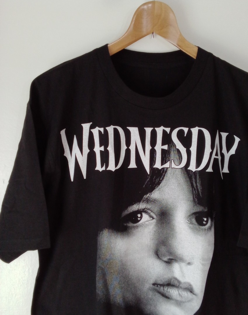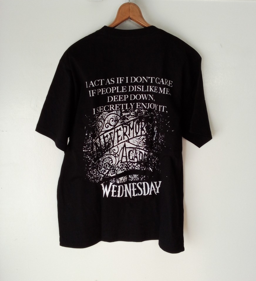 ティム・バートンが監督、プロデューサーを務めるNetfilix放送されたテレビドラマ「WEDNESDAY」のプリントTシャツになります。