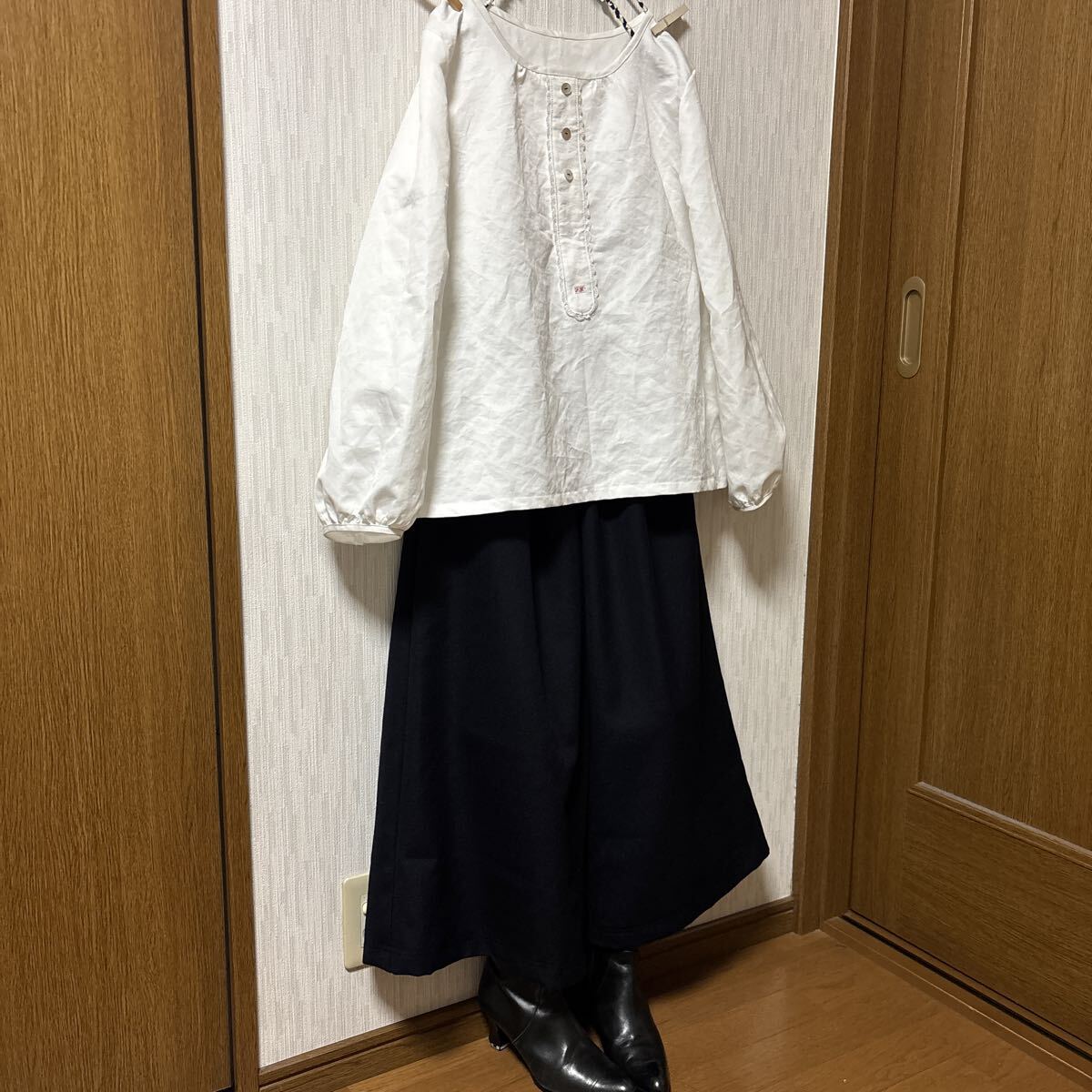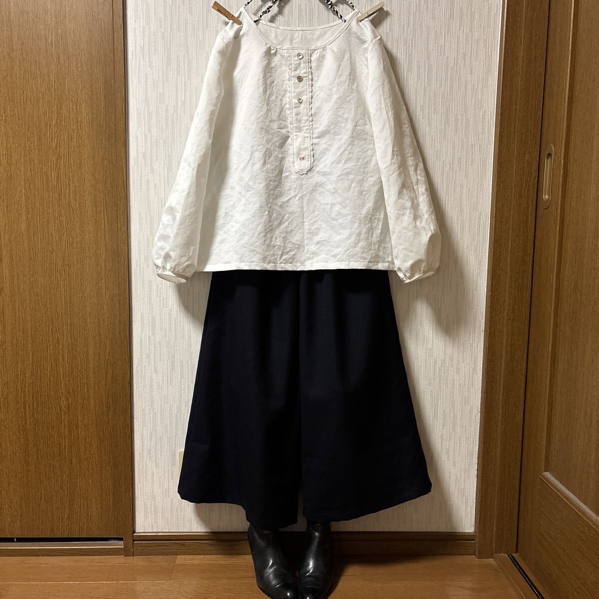 綺麗めにも着られる濃紺のウール生地で、ワイドパンツをつくりました。