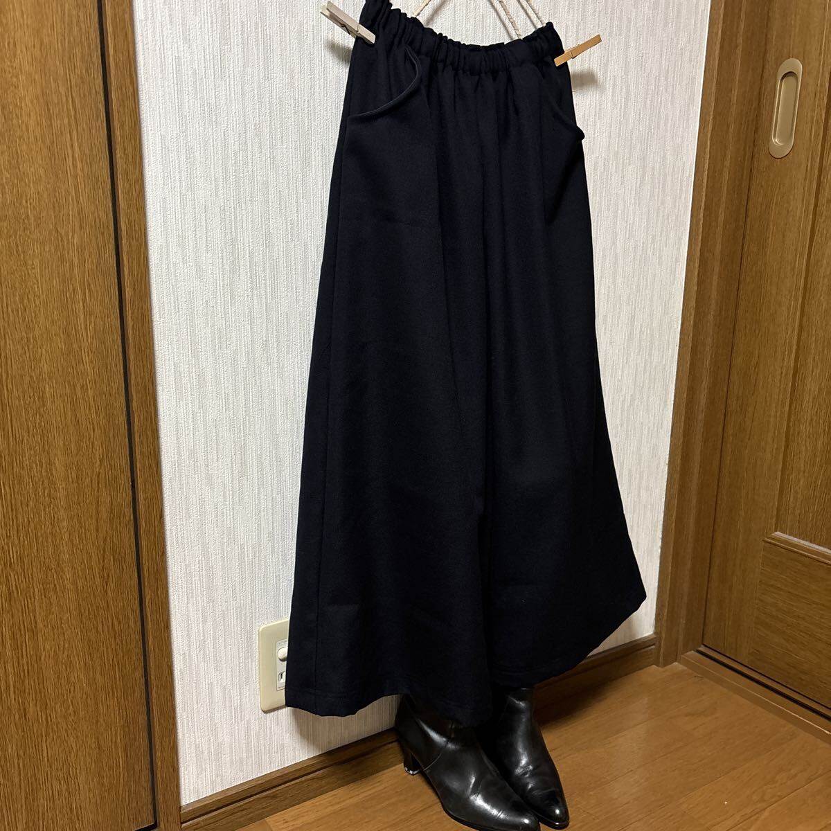 *ハンドメイド*ナチュラル♪ワイドパンツ ガウチョ 濃紺 ウール ネイビー