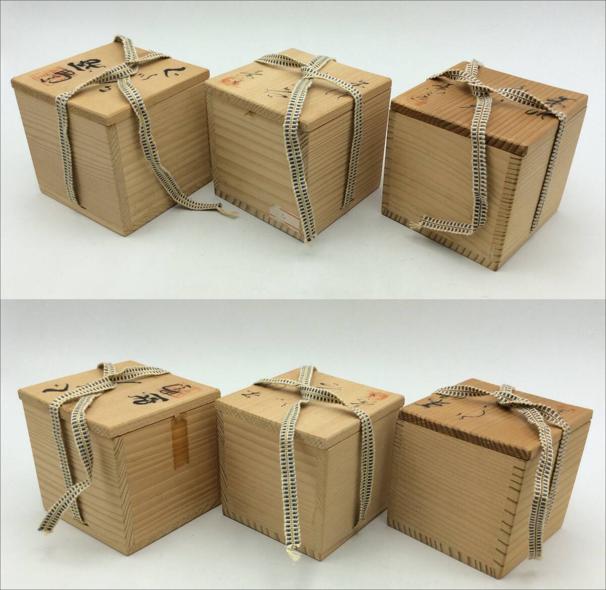 キ17★【3客セット】常滑焼 朱泥 不識庵 素三造 井上素三 ぐい呑み 盃 おちょこ 亀 鯉 鳥 約口径5.0㎝×高さ4.8㎝ 陶芸 酒器 茶器 木箱付き