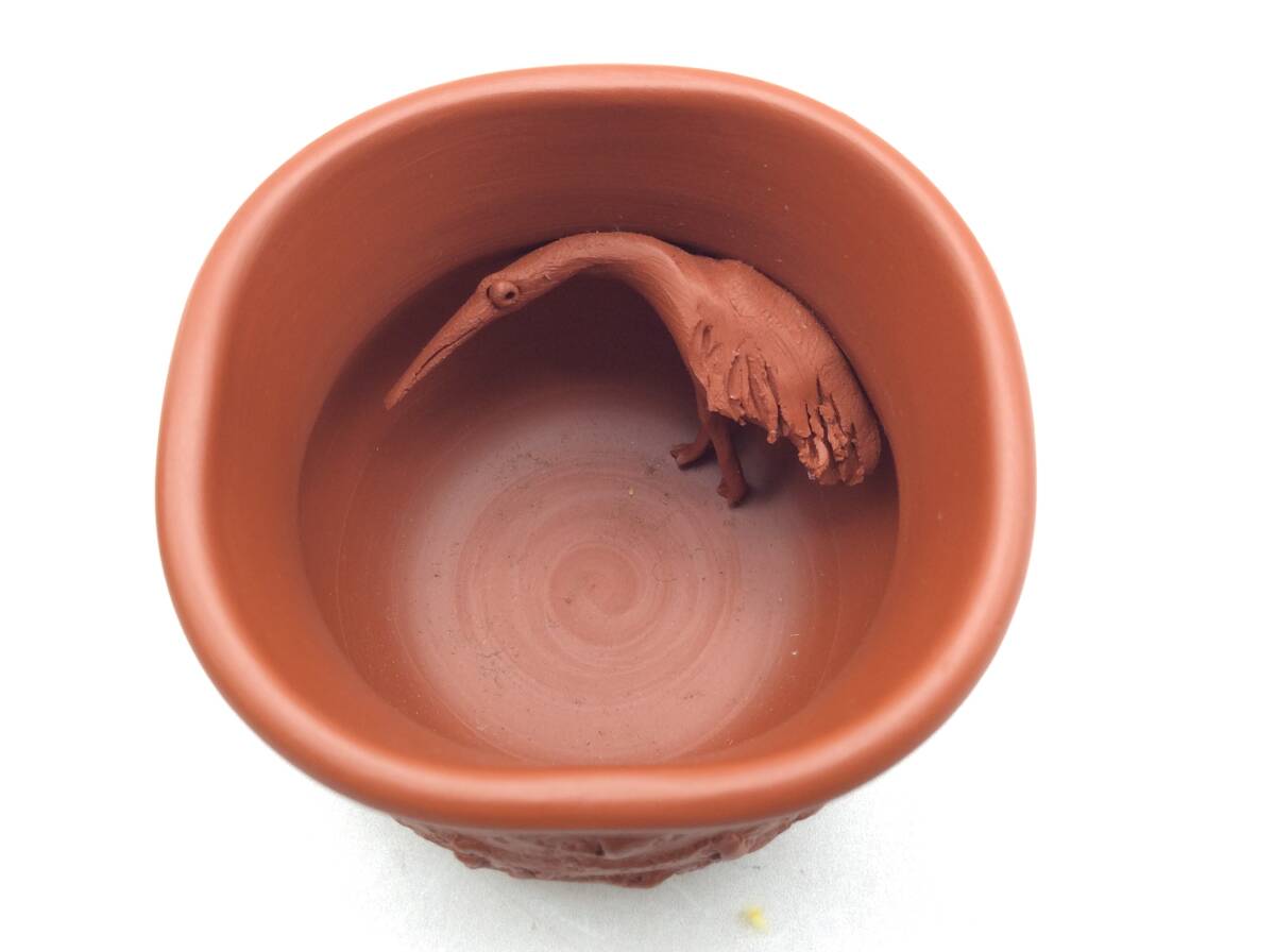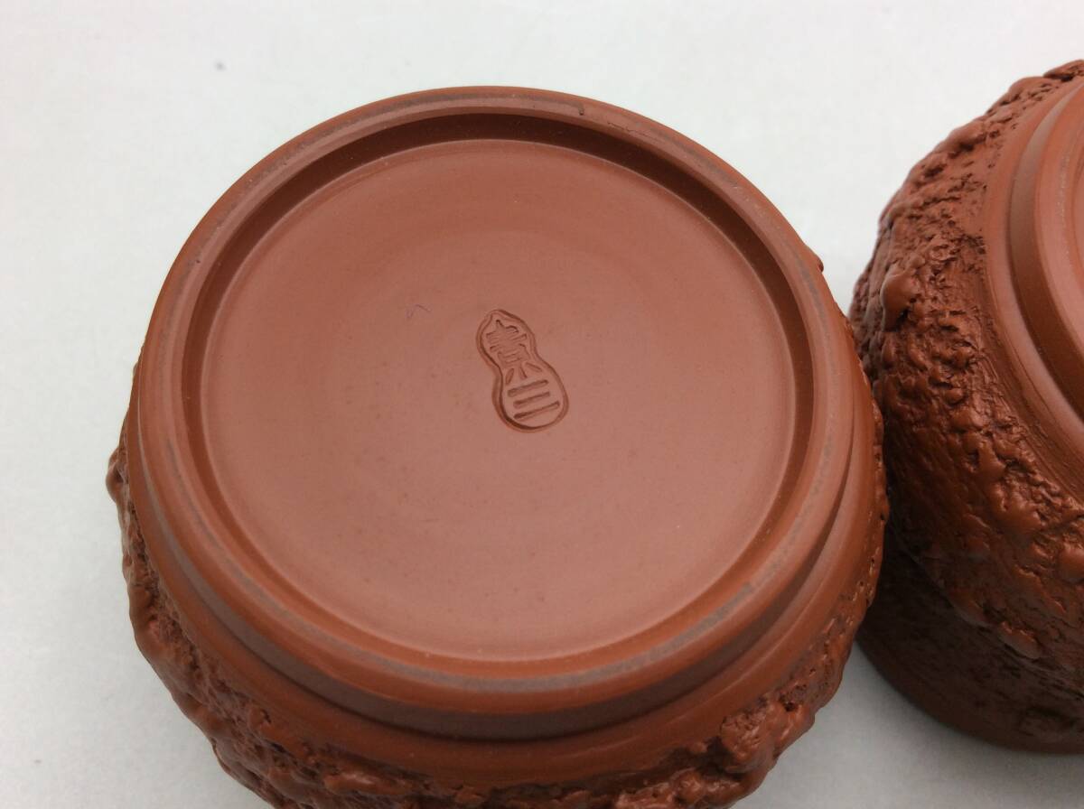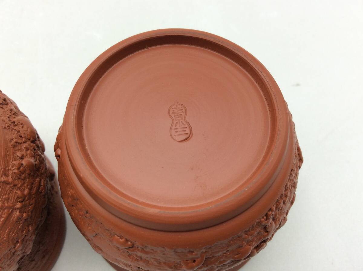 【3客セット】常滑焼 朱泥 不識庵 素三造 井上素三 ぐい呑み 盃 おちょこ 亀 鯉 鳥 約口径5.0㎝×高さ4.8㎝ 陶芸 酒器 茶器 木箱付き
