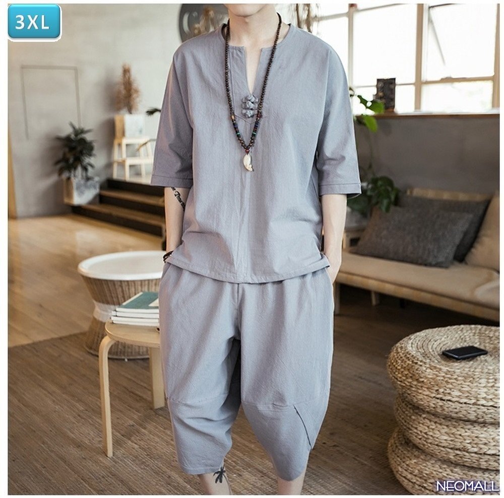 ☆夏にピッタリ☆ 部屋着 ゆったり上下 セット ルームウェア スポーツウェア セットアップ ライトグレー 3XLサイズ 【343】