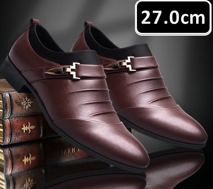 お買得 ☆ メンズ ビジネス レザー シューズ ブラウン サイズ 27.0cm 革靴 靴 カジュアル 屈曲性 通勤 軽量 柔らかい 新品 【195】