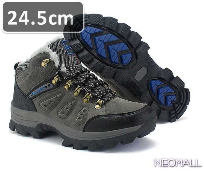 メンズ トレッキングシューズ グレー 24.5cm【861】ハイカット ハイキングシューズ 中綿 防滑 耐磨耗 衝撃吸収 レディース 男女兼用