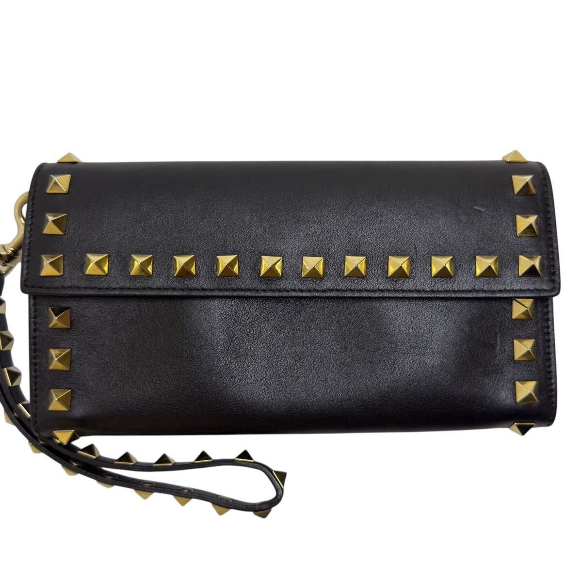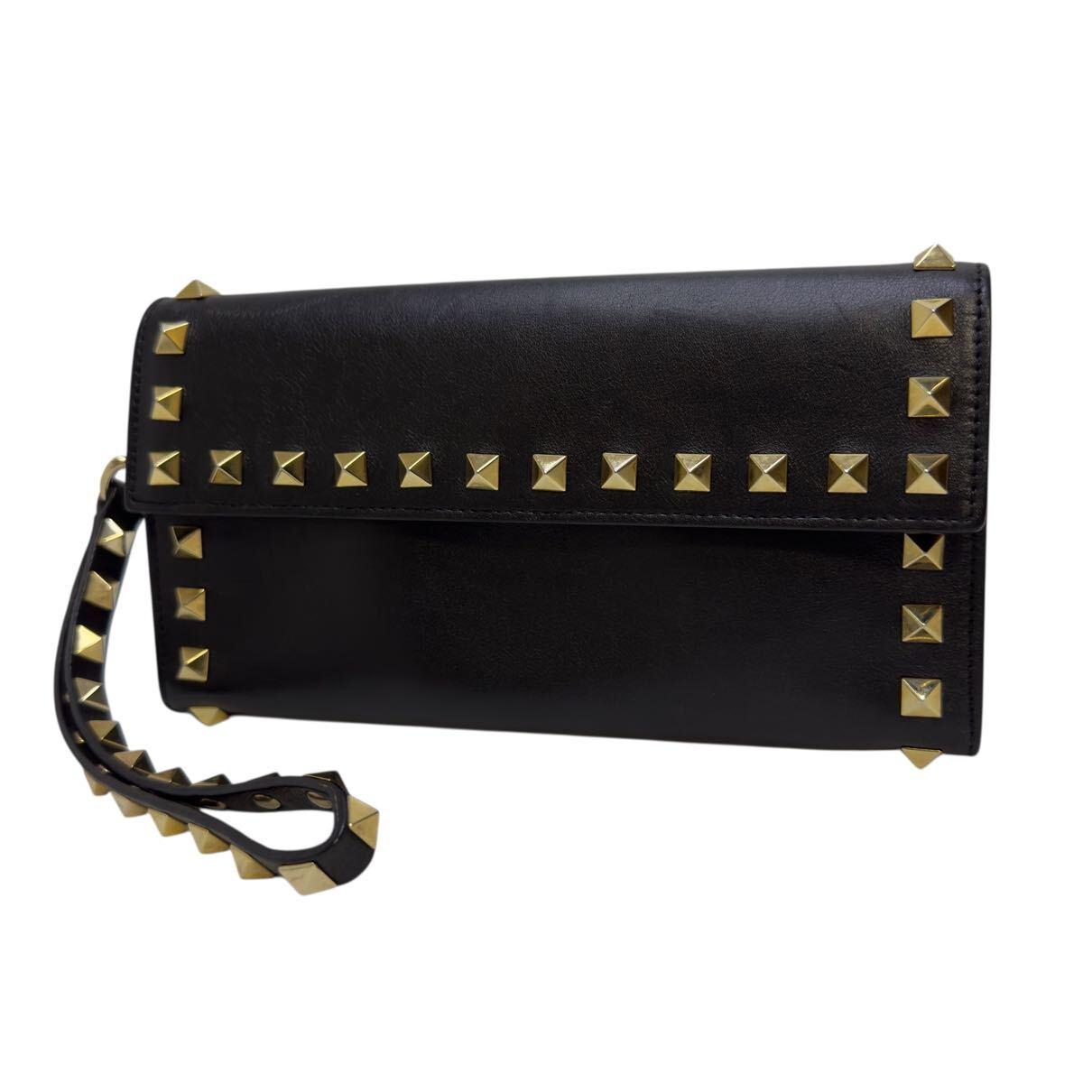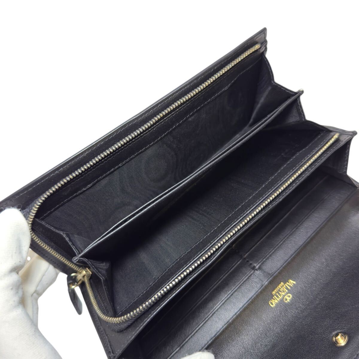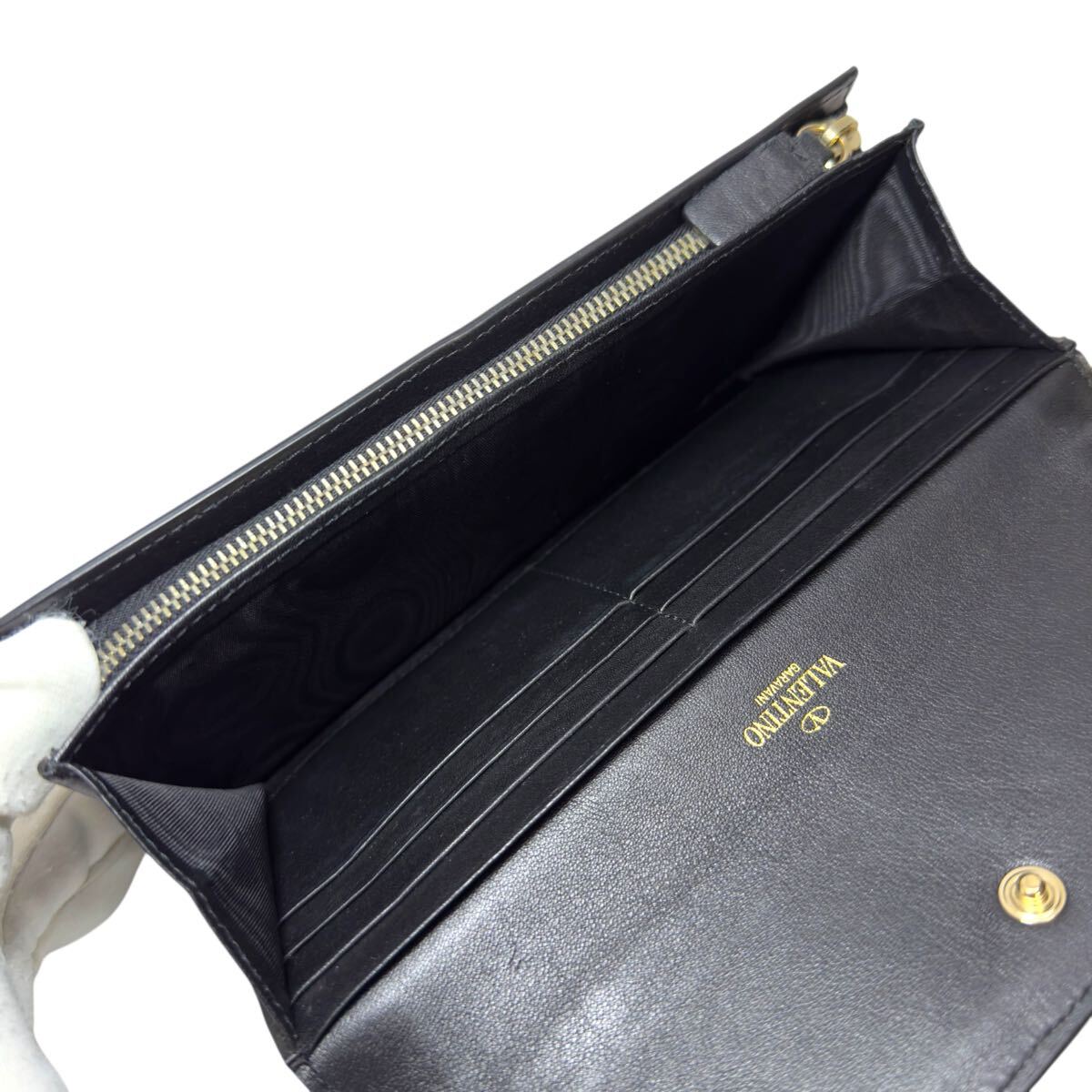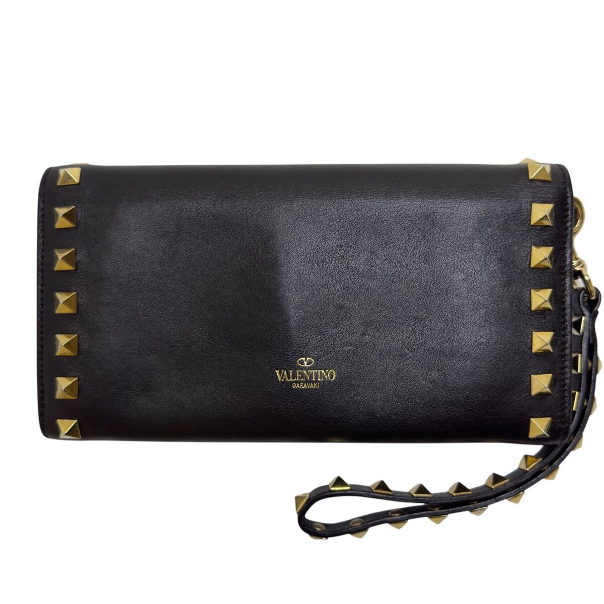 VALENTINO GARAVANI 二つ折り長財布 L字ファスナー ストラップ ロングウォレット レザー ゴールド金具