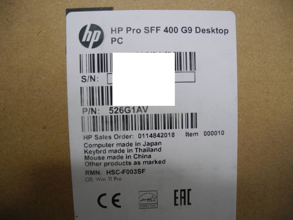 【未開封】HP Pro SFF G9(Win11Pro i5-12500 mem8GB ssd256GB DVDマルチ MS-Offfice2021H&B)