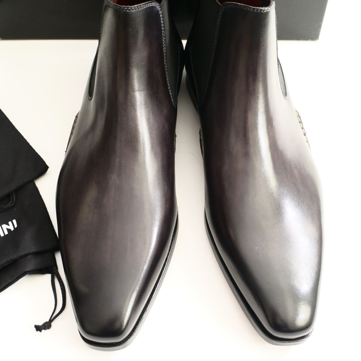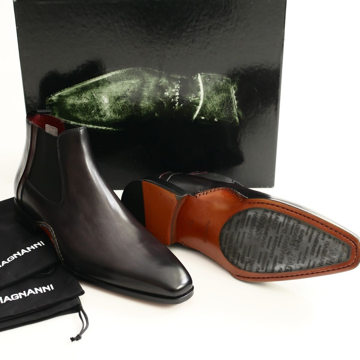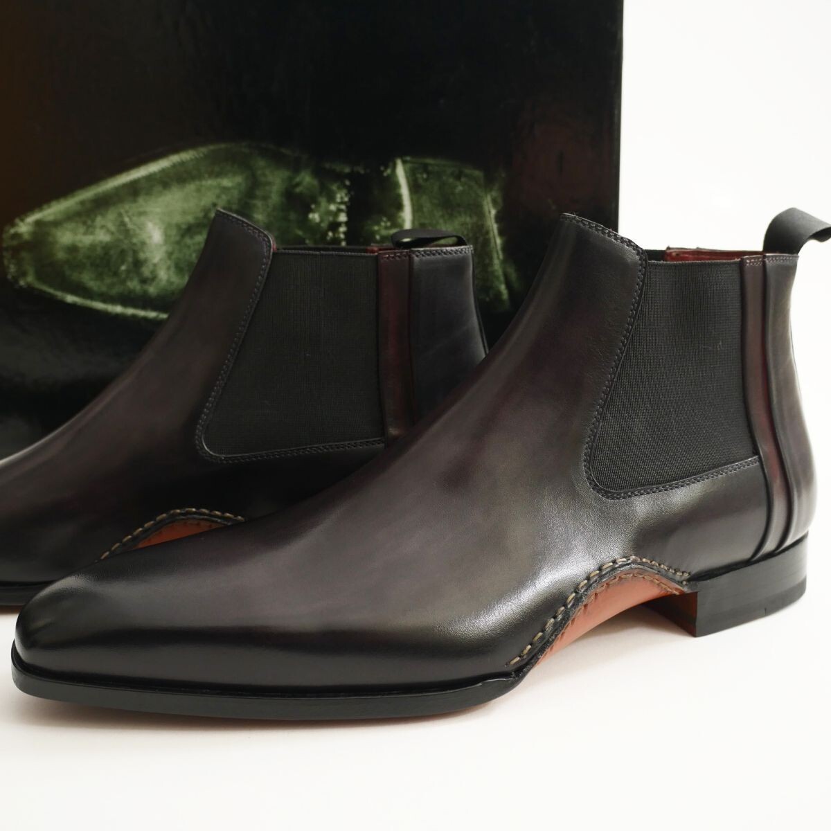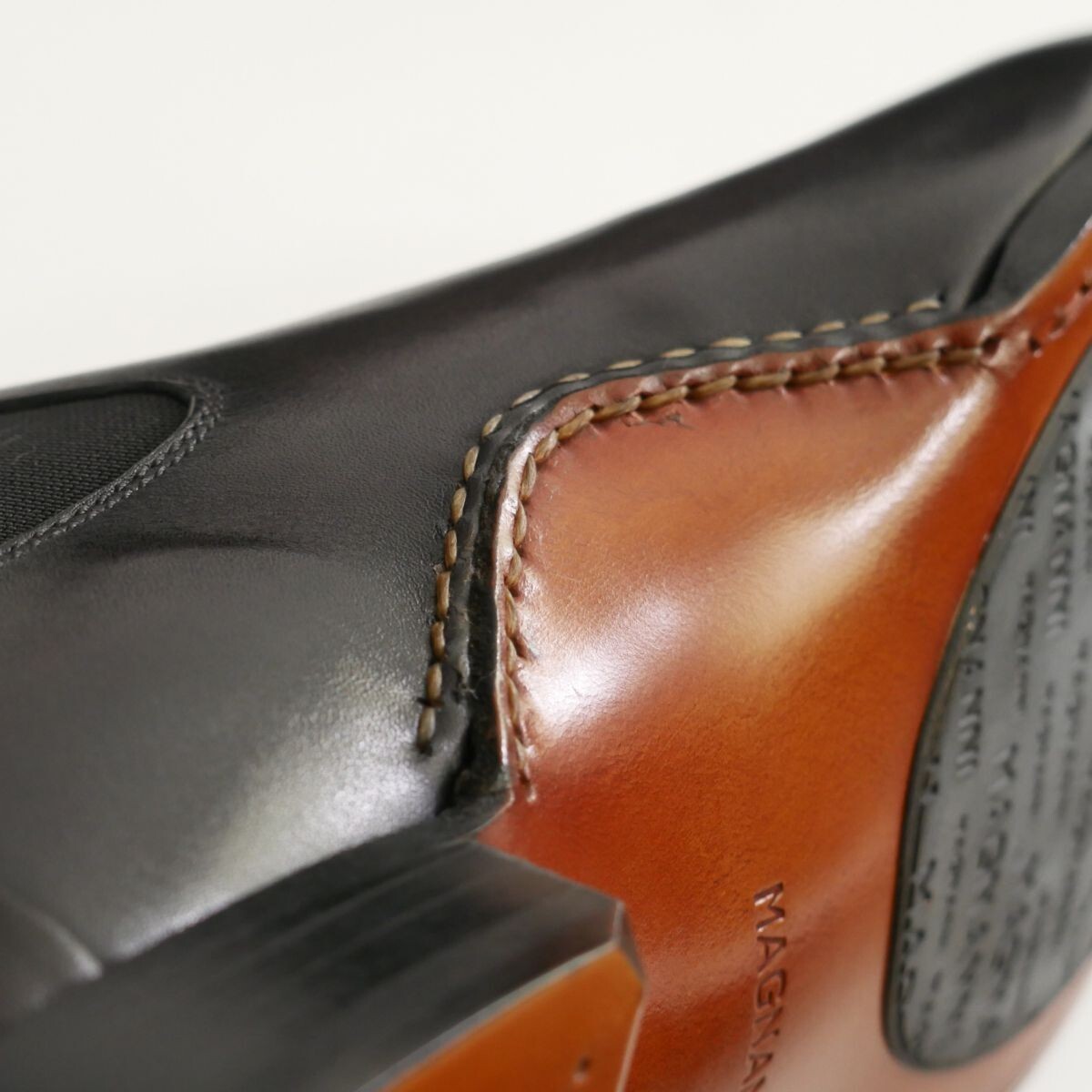 ●プレミアムラグジュアリーブランド「MAGNANNI(マグナーニ)」の、卓越したクラフトマンシップが息づく上質レザーブーツです。独自の“オパンカ製法”によって仕立てられた一足は、ソールとアッパーを一体化させるように縫い上げる伝統的な構造で、靴全体に流れるような美しい曲線と立体的なフォルムを生み出しています。熟練職人の手仕事によって仕上げられるその縫製は、機能性と芸術性を兼ね備えたマグナーニならではの特別な技術です。 ●アッパーには、なめらかで上質なカーフレザーを使用。何度も塗りを重ねて仕上げるパティーヌ仕上げによって、深みのある色調と艶やかな透明感を実現しております。グレイッシュトーンを帯びたブラックが織りなすグラデーションは、光の角度によって異なる表情を見せ、ラグジュアリーかつ知的な印象を与えます。 ●インソールにはブランドロゴを刻印し、裏地には赤茶のレザーを配した上品なコントラストが魅力。アウトソールはハーフラバー仕様で、滑りにくく耐久性にも優れた実用的な設計です。ヒール周りも美しく、靴底まで一切の妥協を許さない作り込みが感じられます。 ●無駄のないシャープなフォルムは、ビジネスからドレスシーンまで幅広く対応し、履く人の足元を洗練された印象に導きます。スペイン靴の粋とモダンエレガンスを融合させた、まさに“芸術的なレザーブーツ”です。専用シューバッグ付き。 ●抜群に美しいスタイルと形状が美しく、コレクションの一つに加えたくなります、男のこだわりブランドと思います。 ●裏の仕上げや化粧釘に至るまで、しっかり決めていただく男に足元に、正に相応しい品です。 ●アウトソール半張りラバー。ヒールかかと一部分ラバー付。インソール、アウトソール、ネーム入り。専用布袋と、箱付属。*箱のダメージなどはご容赦ください。 ●スペイン製 ●色:グレイッシュトーンを帯びたブラック系 お写真をご参考くださいませ。 ●素材:本革 ●サイズ:EU42 *日本サイズ26.5-27cmあたりで、下記詳細サイズもご確認くださいませ。 ●詳細サイズ(cm)置いた状態で: [アウトソール最長部]約31.4cm、[最大外寸幅]約10.5cm [インソール最長部]約30cm 詳細サイズご参考 ※大よその採寸となります。 ※お品物はタイトルにございますもののみとなり、着合わせのお洋服や小物などがございましても、それらは含まれません。 ※素材の特性上、多少のことはご容赦くださいませ。 ※ご質問は、必ずご入札前にお願いいたします。(ご入札後、ご落札後の取引ナビからのご質問はお避け下さい) ☆☆☆ご連絡・お支払い(Yahooかんたん決済)☆☆☆ ご落札後24時間以内に、取引ナビからご連絡(お名前・ご住所全て。*サイズ選択いただけるオークションはサイズのご連絡も含め)・Yahooかんたん決済可能な方。 *銀行振込の場合は翌営業日、コンビニ決済はご落札後2日目の午前中まで、お支払いをお済ませ下さいませ。 電話応対は、一切致しておりません。取引ナビをご利用下さい。 ☆☆☆受け取り連絡☆☆☆ 製品到着後24時間以内。*出来る限り、到着日当日に受け取り連絡頂きましたら幸いです。 *配達日指定ご希望の際は、ご落札後、最長4日以内に「受取連絡」ができるようお願いします。(北海道・沖縄・離島の方は5日以内) *特別に記載をしました際には、そちらを優先させていただきます。 ☆☆☆同日に2点以上のご落札の場合☆☆☆ 「まとめて取引」を、最初にご選択ください。 *「まとめて取引」を、お届け情報などご入力前にご選択ください。同梱発送となり、一品分の送料のみとなります。 *「まとめて取引」をご選択されなかった場合、出品者側では送料訂正できませんので、予めご了承くださいませ。 新規IDの方は、こちらを必ずご覧くださいませ ☆☆☆ご入札及びご落札のキャンセルはしていただけません☆☆☆ ![]() 【お支払い】 合計金額 = ご落札価格 + 送料 ◆Yahooかんたん決済(ご落札後24時間以内に支払い手続きを完了ください。) *2点以上同日ご落札の場合は、『まとめて取引』をお選びください。 *領収書がご必要の際:ご落札後Eメールアドレスを、取引メッセージにてお知らせ下さい。電子領収書をEメールに添付してお送り致します。 Yahoo!かんたん決済は、ヤフオク!の商品代金の支払い、受け取りを簡単安心に行える決済サービスです。ご落札者様は、クレジットカード、コンビニ支払い、銀行振込はもちろん、Yahoo!マネー、Tポイントも利用できるお支払い方法です。 【発送】 発送は、クロネコ宅急便(元払い)のみとなります。迅速な対応を心掛けております♪ ☆宅急便送料---全国一律。(送料は自己紹介欄に記載しております) *配達時間指定:午前中、14-16時、16-18時、18-20時、19-21時。(時間指定ご希望の方は、必ず最初にお知らせください) *シンプル・丁寧な梱包を心がけておりますが、梱包のリクエストはご遠慮くださいませ。 *離島は、通常よりコンパクトな梱包となります。 *2点以上同日にご落札頂