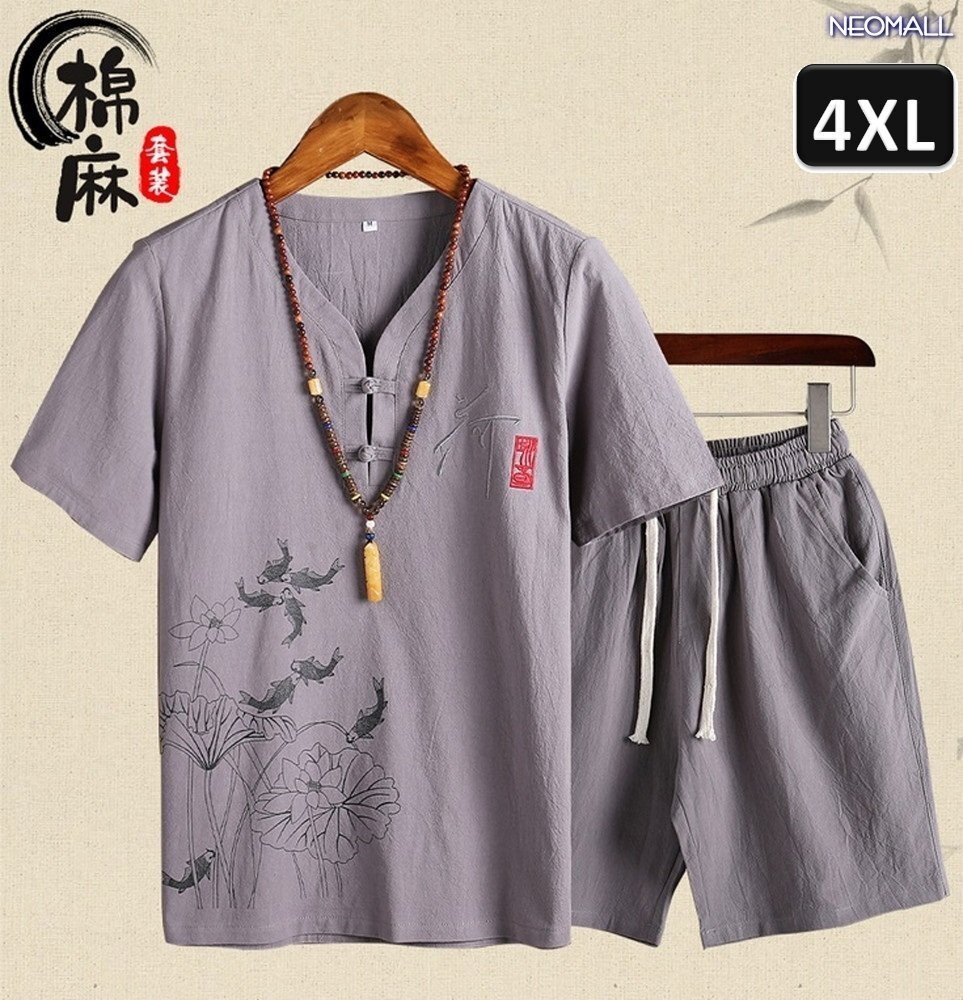 夏にピッタリ 【408】ルームウェア セットアップ グレー 4XLサイズ 半袖 パンツ メンズ 部屋着 メンズ オフ 清涼
