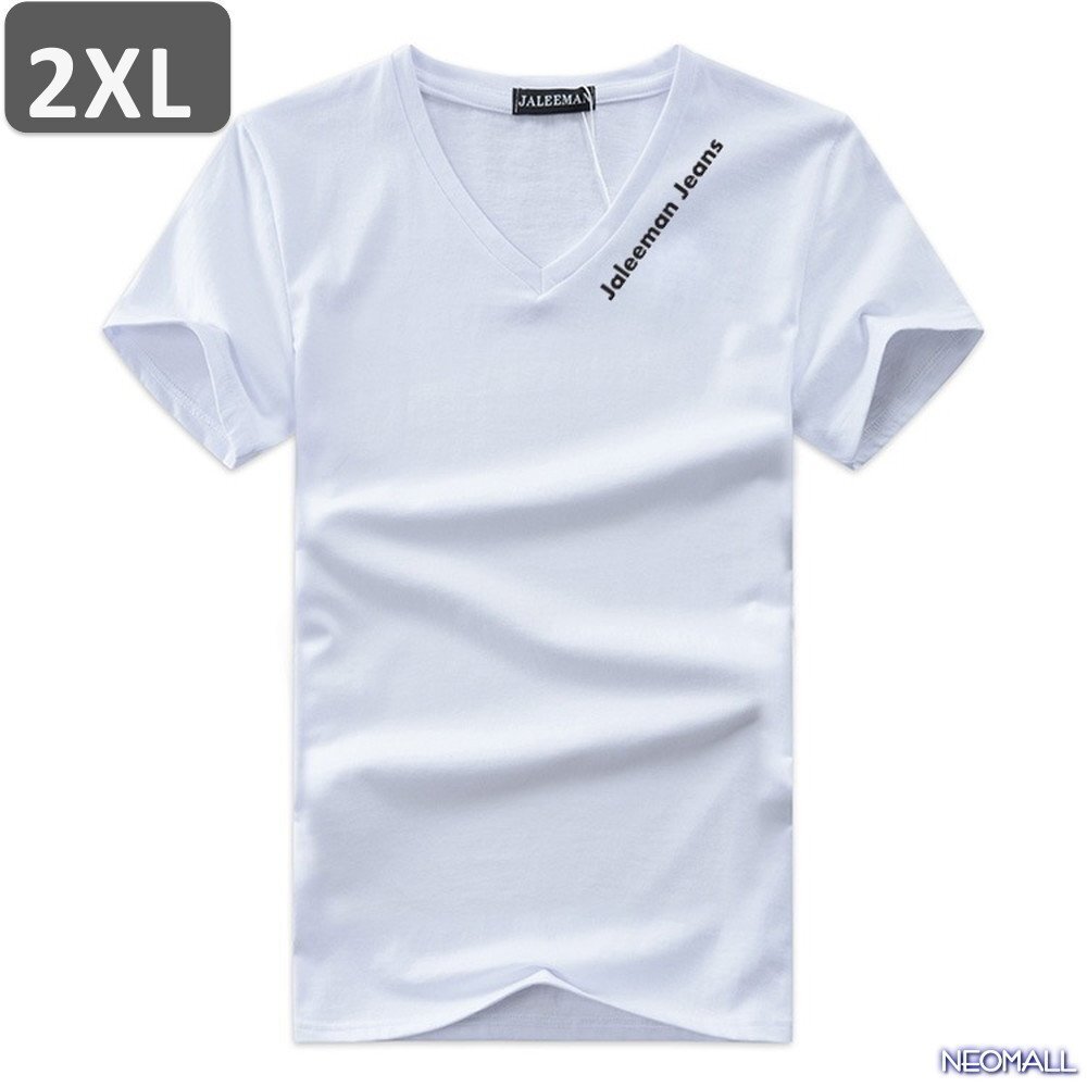夏にピッタリ ☆ Vネック 半袖 Tシャツ【451】 ホワイト 2XLサイズ トップス シャツ シンプル イラスト デザイン 春夏