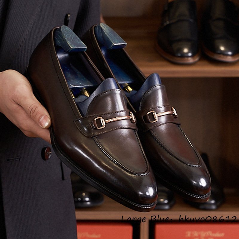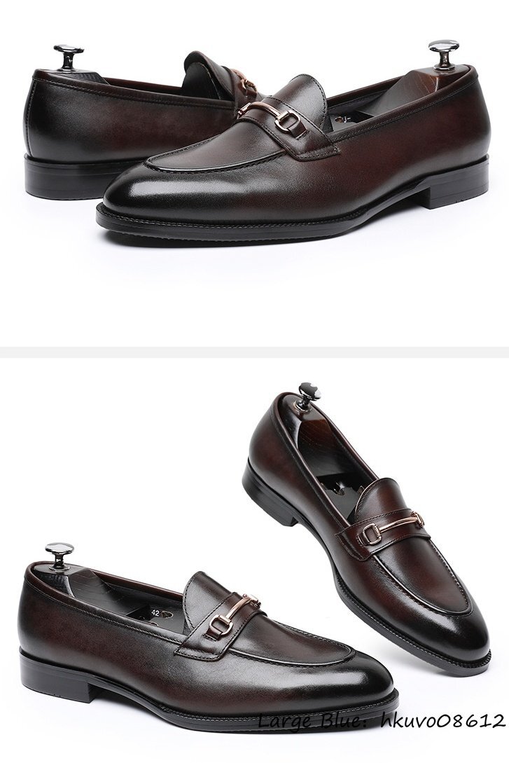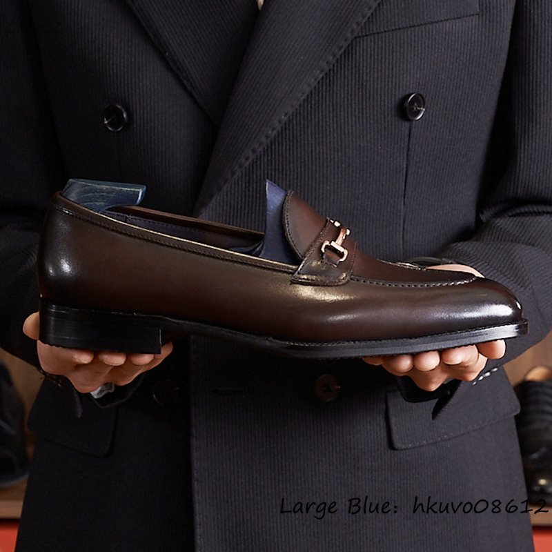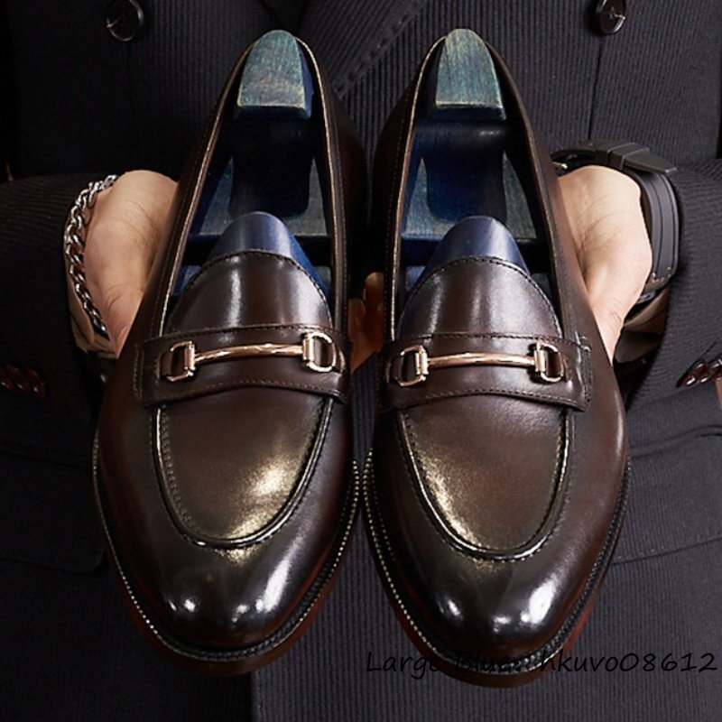 最上級◆定価10万 ビジネスシューズ メンズ ビットローファー 職人手作り 本革レザーシューズ 紳士靴 牛革 革靴 冠婚葬祭 ブラウン 27.5cm