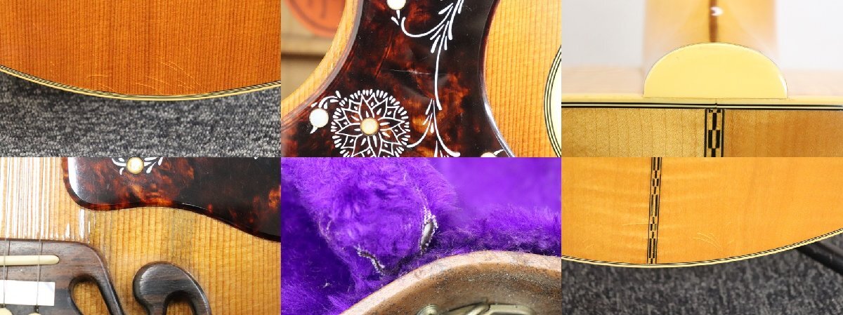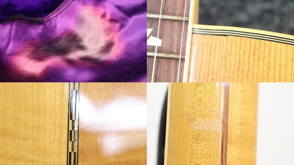 | ◆外観◆ ・★キズ、汚れ、使用感があります。 ・★全体的にヒビが見受けられます。 ・★打痕が見受けられます。 ・★ピックガードにヒビが見受けられます。 ・★ネック裏に塗装欠けが見受けられます。 ・★ケース内部の生地の解れと色褪せがあります。 |