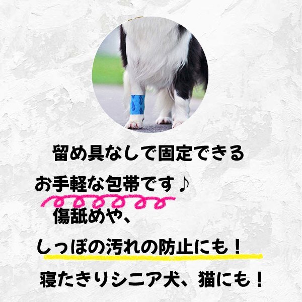 送料無料 犬 猫 包帯 選べる3個セット ペットフレックス テーピング 怪我 バンテージ 怪我なめ防止 しっぽ汚れ防止 自着 伸縮 アソート