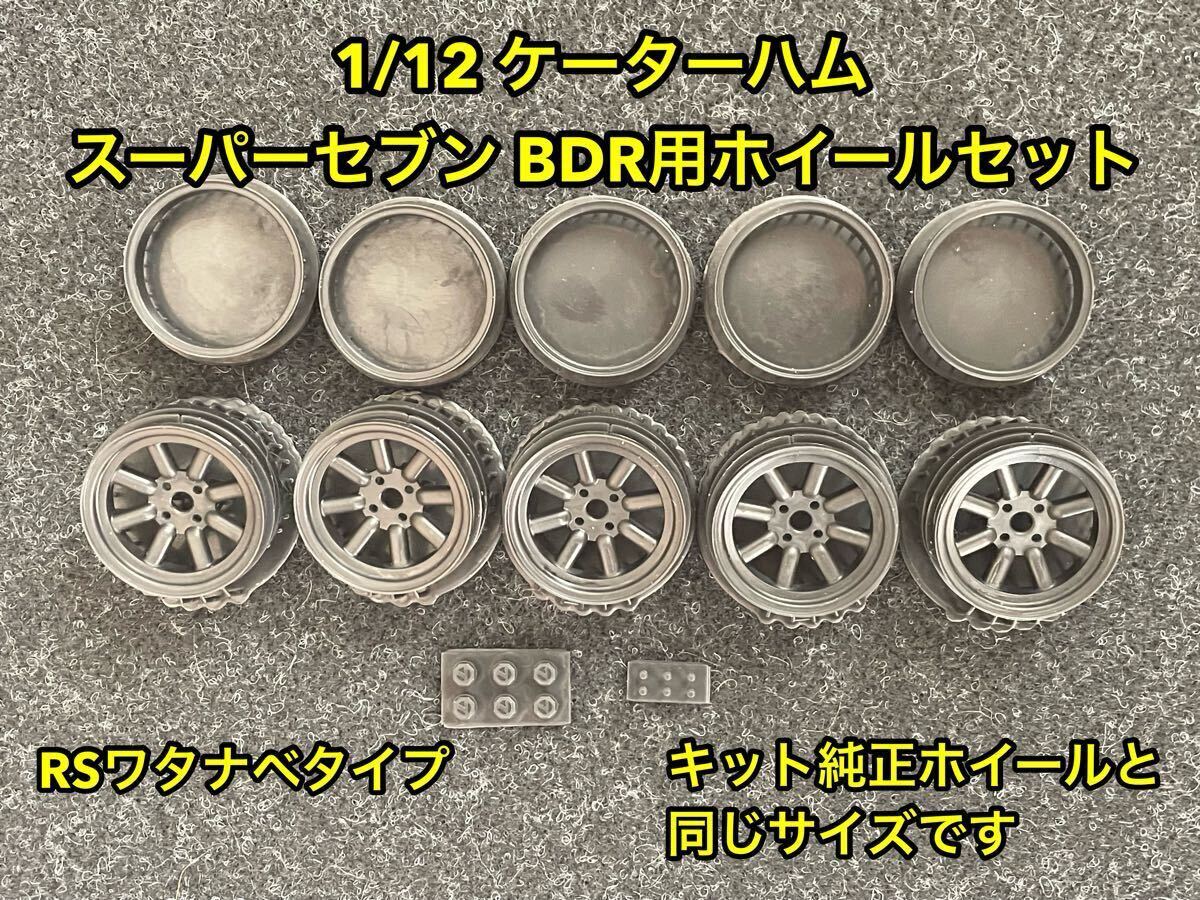 *3Dプリンター製のタミヤ 1/12 ケーターハム スーパーセブン BDR用のRSワタナベタイプホイール5個セットです。センターキャップ、エアバルブが付属します。