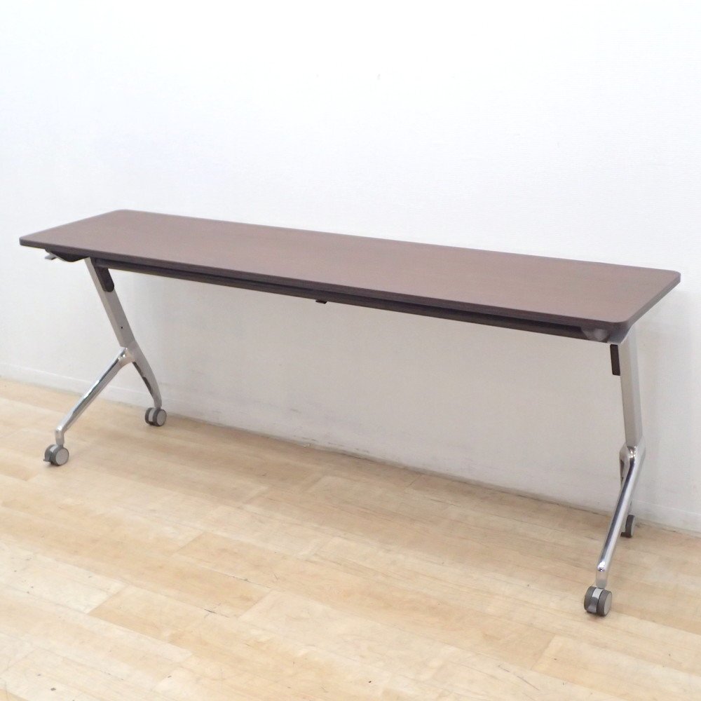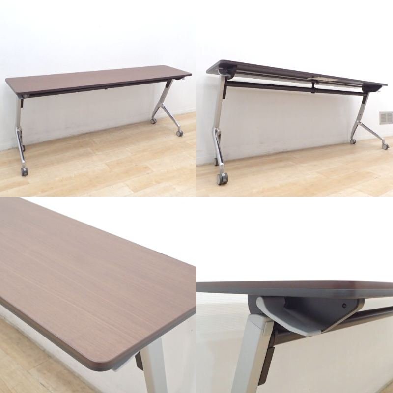 便利なフラップ式天板のミーティングテーブル! 小規模オフィスや会議室のスペースを有効活用したい方に必見です。 落ち着いた木目のダークブラウンがビジネスシーンに好感のある趣。 学習塾などのスクールやイベント会場など、様々なシーンで活用できるサイドスタックテーブルです。 ぜひ、フル活用して業務の効率化を図りましょう! ※写真で掲載の商品そのものが届くとは限りません。複数入荷した中の1点を掲載している場合がございます。 |