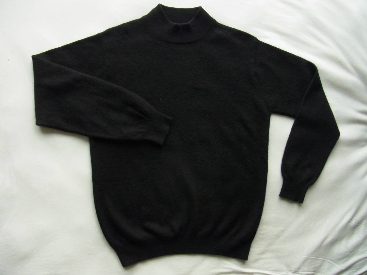 カシミヤ100% モックネックセーター サイズ L ブラック  衿ネームに汚れ有り