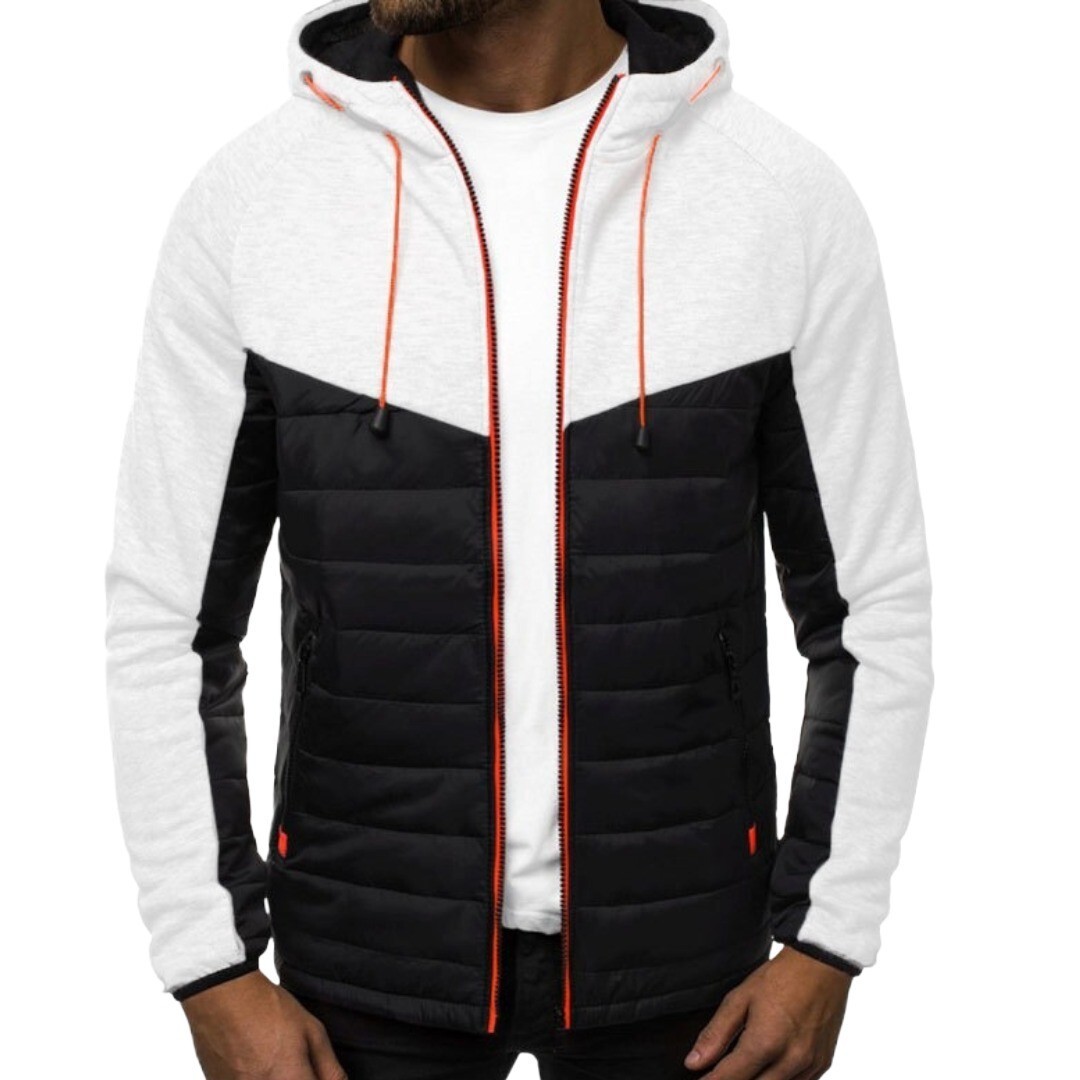 t59【 M 白】 薄手 メンズ ジップアップ フルジップ ニットジャケット パーカー フリース 切替デザイン ゴルフウェア アウター アウトドア