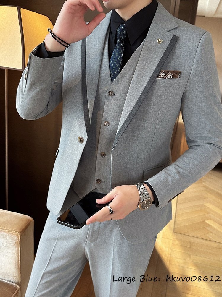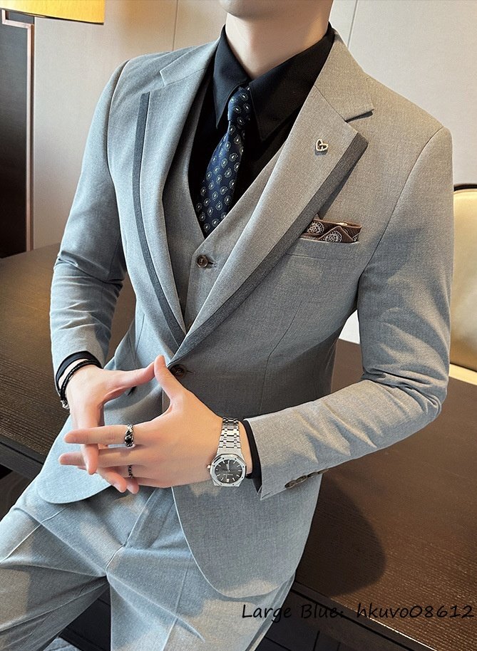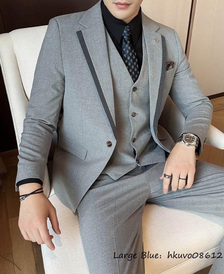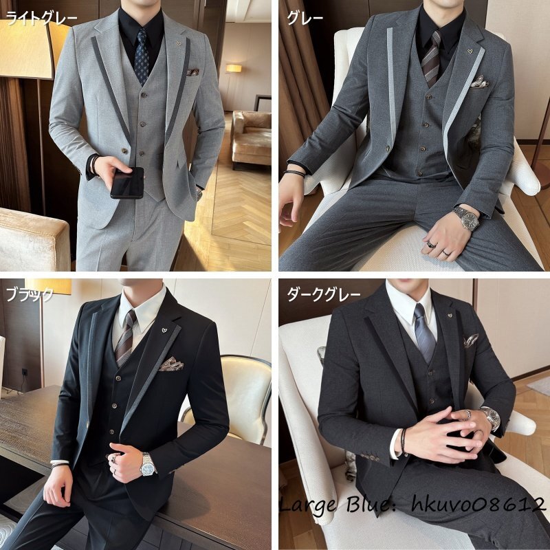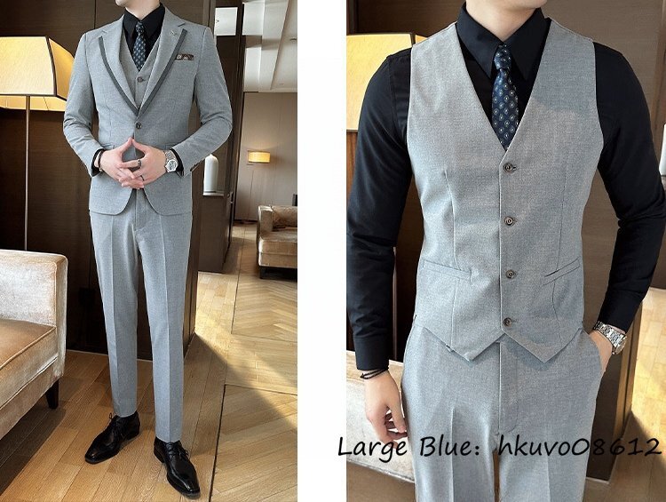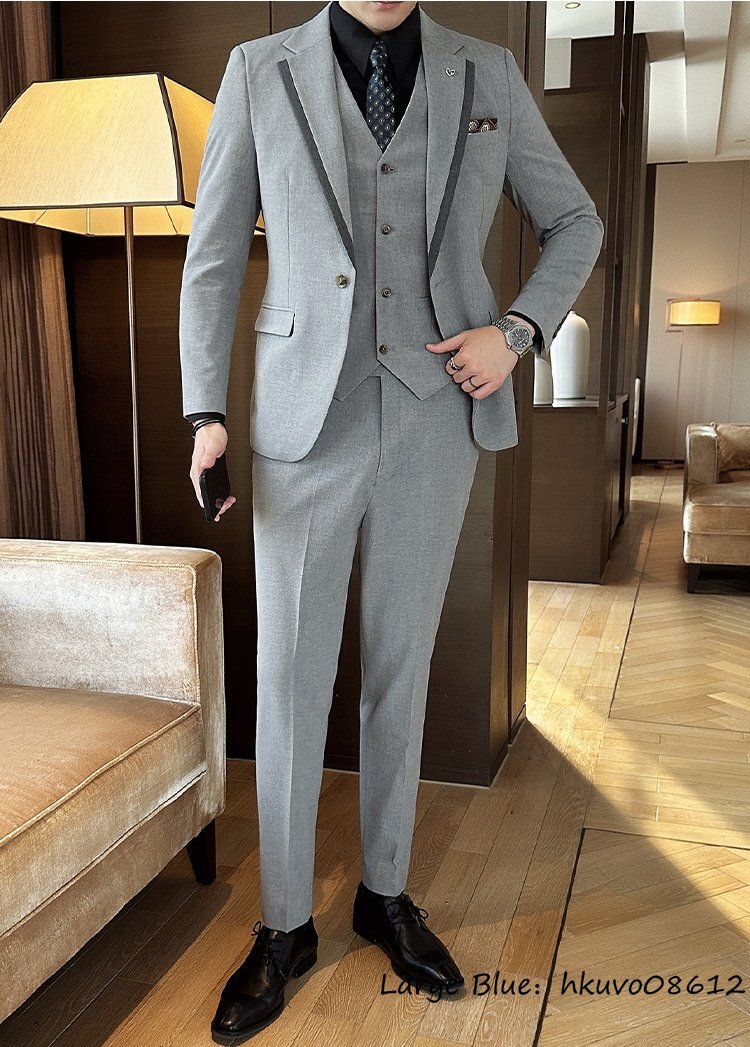新品■スリーピース スーツセット 3点セット ビジネススーツ シングルスーツ 高級 無地 スリム 一つボタン 紳士服 結婚式 ライトグレー XL