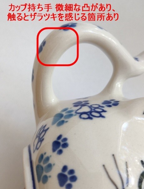 ・カップ持ち手 微細な凸があり、触るとザラツキを感じる箇所あり