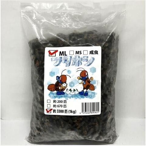 直前まで十分に餌を食べていた各種コオロギを生きたまま冷凍し、足取り加工を行いました。