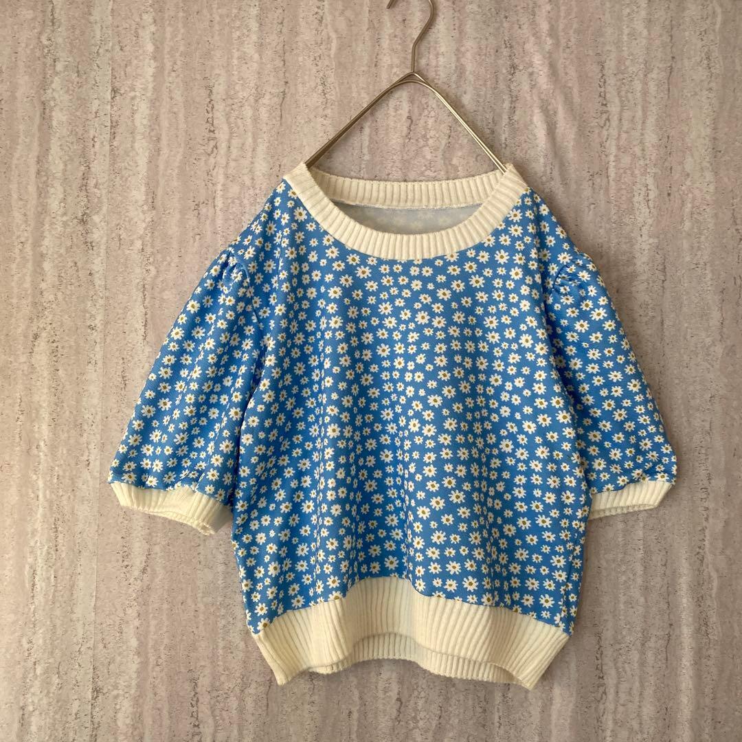花柄や、ほんのりぽわんそでがとっても可愛い半袖ニット。