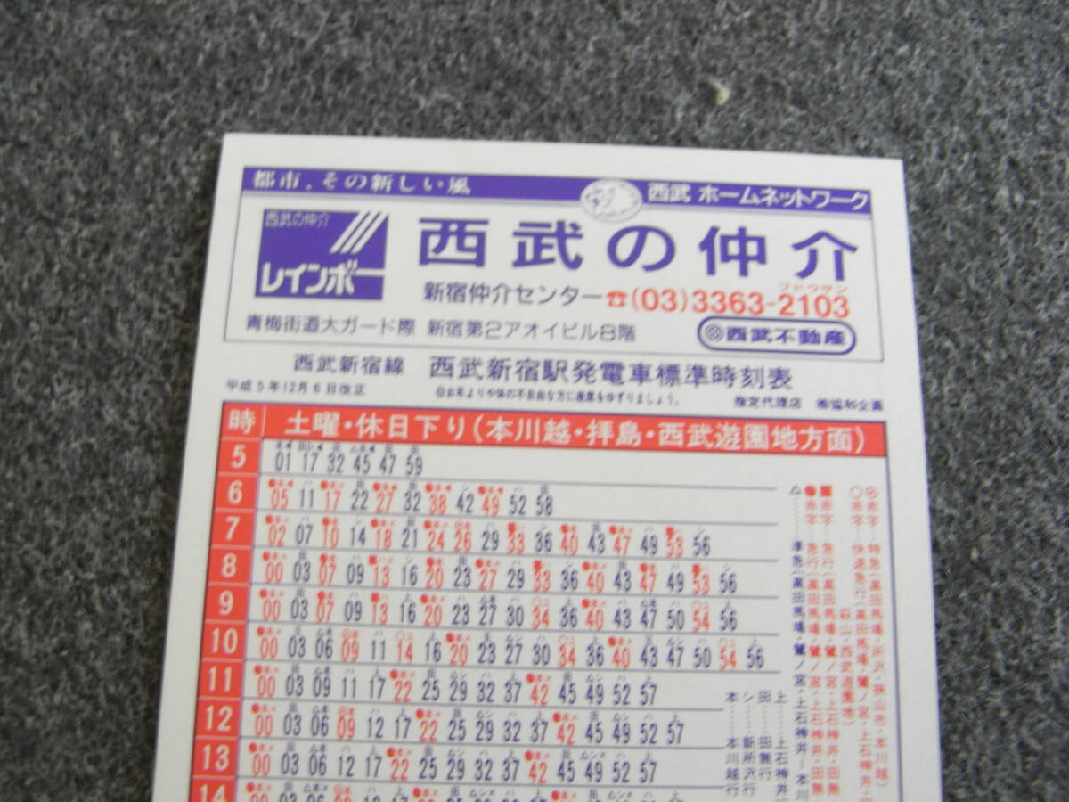 西武新宿線 西武新宿駅発電車標準時刻表 平成5年12月6日改正 西武鉄道時刻表
