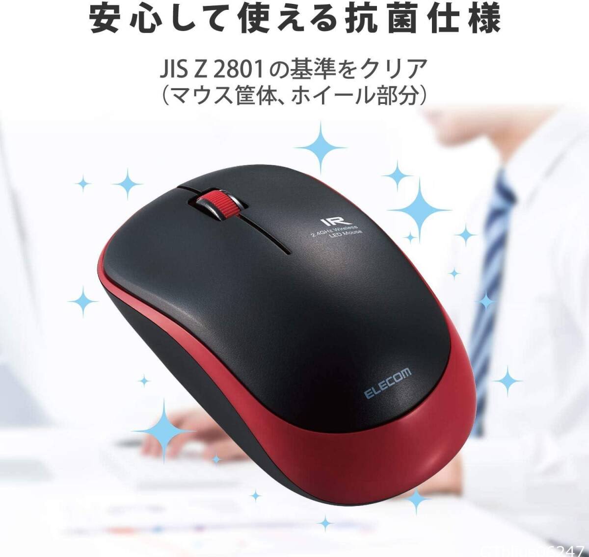エレコム(ELECOM) ワイヤレスマウス ENELO M-IR07DRSKRD 抗菌 静音 電池寿命約2.5年 3ボタン レッド