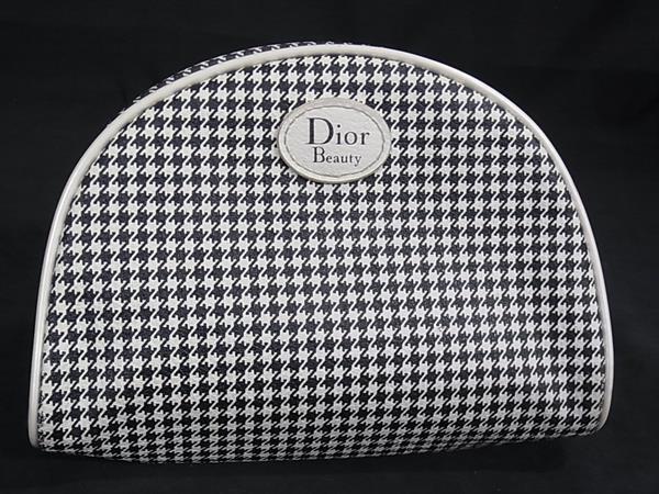 DIOR ディオール 千鳥格子柄 PVC メイクポーチ マルチケース 小物入れ アイボリー系×ブラック系 DJ8743