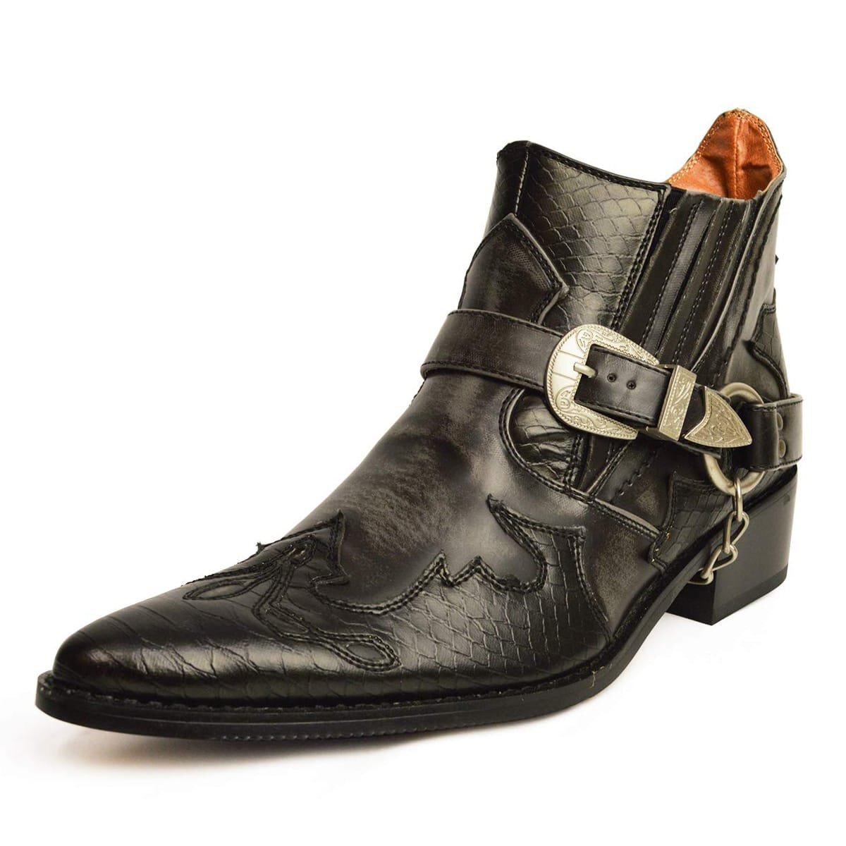 メンズ ウエスタンブーツ 脚長 ヒールアップ サイドゴア サイドジッパー ヘビ柄 パイソン バックル リングブーツ 男 靴 ze6001