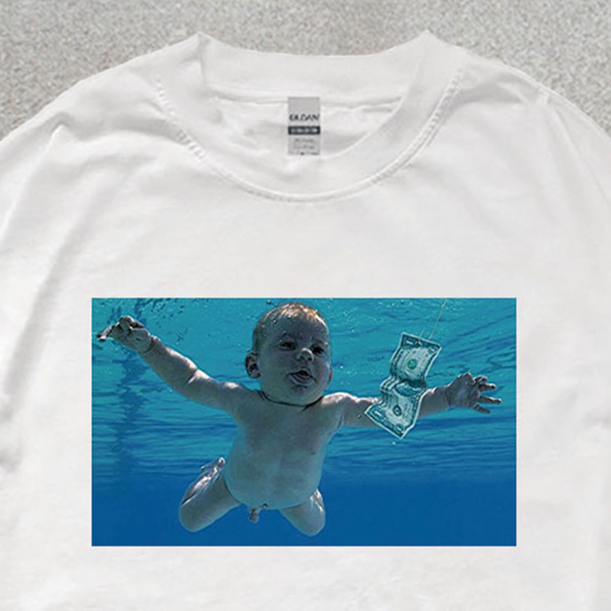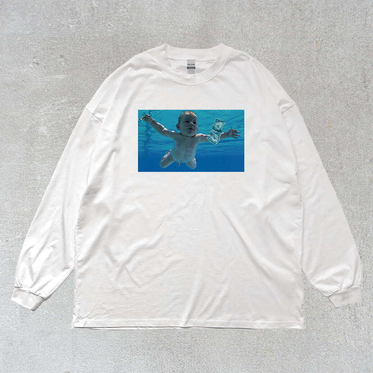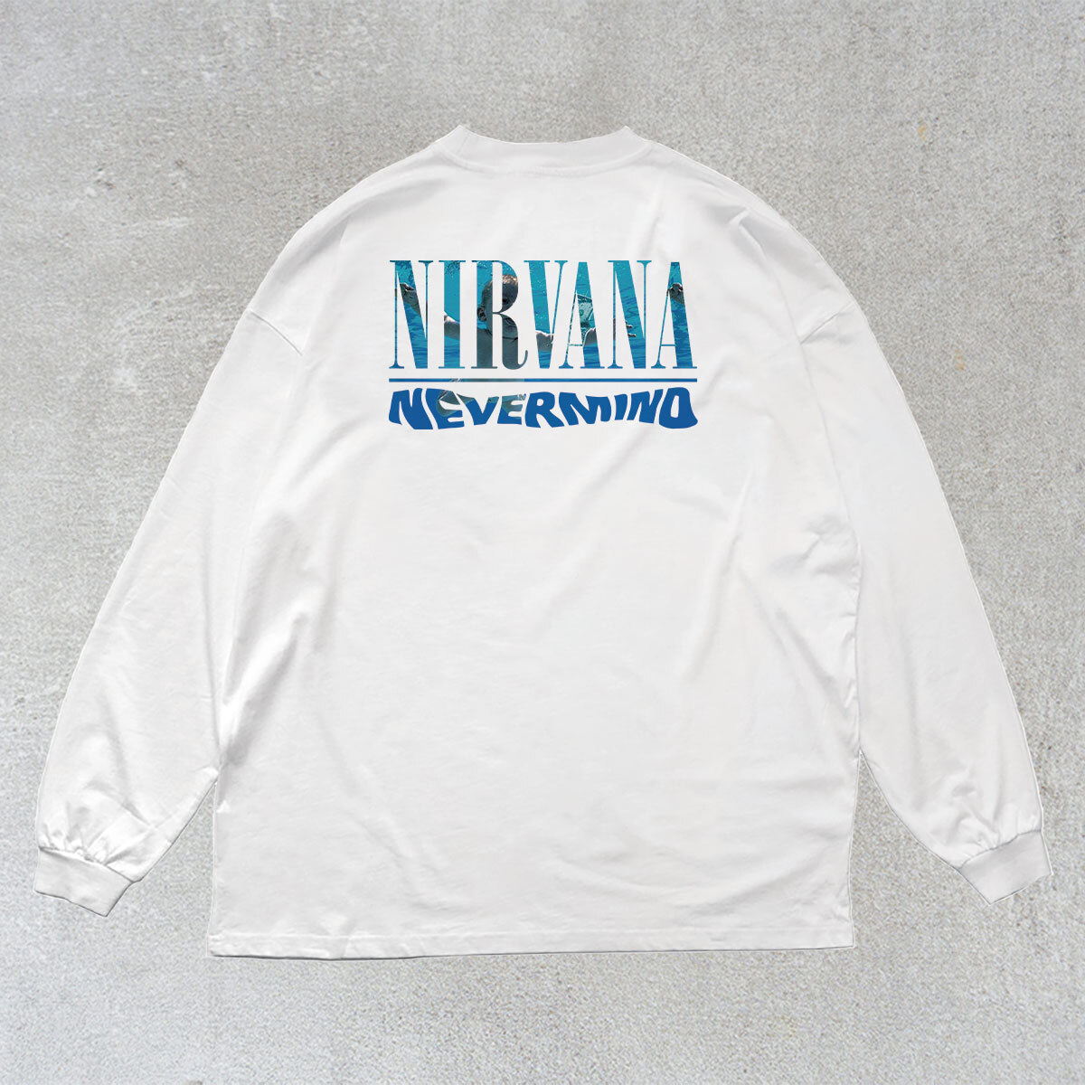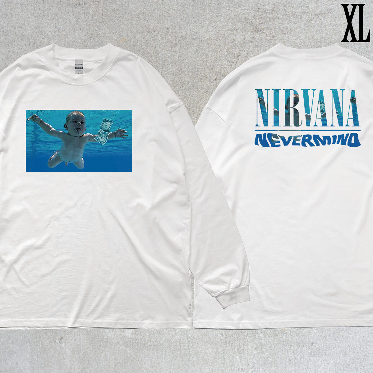 ニルヴァーナ NIRVANA ネバーマインド フォトプリント バックプリント リブ付き 長袖 Tシャツ ロンT 6oz 綿100% シロ XL
