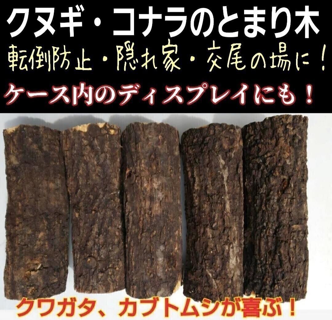 こだわりのカブトムシ、クワガタ用品を30年以上製造してきました。 たくさんのリピーター様には大変感謝申し上げます。 また、たくさんの効果報告を頂きありがとうございます。 ![]() カブトムシ・クワガタが喜ぶ! 数量:1本 ご希望の数をご対応致します。 コナラ、クヌギ カブトムシ、クワガタムシ成虫飼育に最適な、とまり木の出品です。 ![]() 転倒防止や隠れ家に最高です。 飼育ケース内の雰囲気出しにもなかなかGOODです。 ![]() カブトムシ、クワガタが最も好むコナラやクヌギです。 ![]() 長さ13センチ前後 直径5センチくらいです。 ![]() 高圧乾燥させてますので雑虫混入もありません。 ![]() 本数の追加は何本でもOKです。 ![]() 購入後、商品、飼育のサポートも致します。 他にもクワガタ用の未発酵菌糸マット、オオクワガタ専用カロリーマット、成虫管理に最適な針葉樹マットや、成虫飼育やディスプレイに使える、とまり木、ハイグレードプロゼリー、栄養添加剤なども出品していますので私のその他の出品もご覧下さいませ。 私の出品者名をクリックすると商品一覧が見れます |
