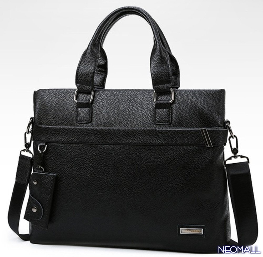 人気☆ 新品 メンズ 高級PUレザー ビジネスバッグ【608】ブラック ブリーフケース ショルダー スクエア 横型 大人気 質感◎