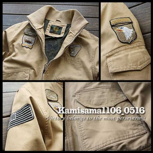 国内未販売フライトジャケットの出品です。 立て襟のデザインで型くずれしにくい身体にフィットすることを考えた裁断により着用するとデザインが際立ち、着心地が良いフロント、袖とバックに3Dウレタン刺繍ロゴ入りでカッコウいい!! マークは内側にもあり、脱いだ時にもお洒落袖がリブ仕様になので肌触りがやさし、防風効果ありポケット口が斜めになっているため物や手の出し入れが簡単日本未上陸商品であなただけの1枚になりそう♪興味のある方は是非どうぞ ◆状 態 : 新 品 ◆カラー :ベージュ系 ◆実 寸 :背中側採寸 身幅/脇下すぐ ◆SIZE: (単位:約cm) M : 着丈約65cm 胸囲約115cm 肩幅約44cm 袖丈約62cm L : 着丈約66cm 胸囲約116cm 肩幅約45cm 袖丈約63cm XL : 着丈約67cm 胸囲約117cm 肩幅約46cm 袖丈約64cm XXL:着丈約68cm 胸囲約118cm 肩幅約47cm 袖丈約65cm XXXL:着丈約69cm 胸囲約120cm 肩幅約48cm 袖丈約66cm XXXXL:着丈約70cm 胸囲約122cm 肩幅約49cm 袖丈約66cm ◆素材:COTTON100 ※サイズだけでは無く,必ず実寸をご確認下さい。 ※実寸は平置実寸。計測の仕方で若干の誤差がありますので参考程度。 |